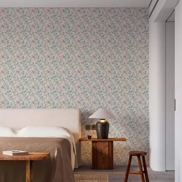 Tapetes Pasteļputni un zariņi uz gaiša fona Nr. a00128