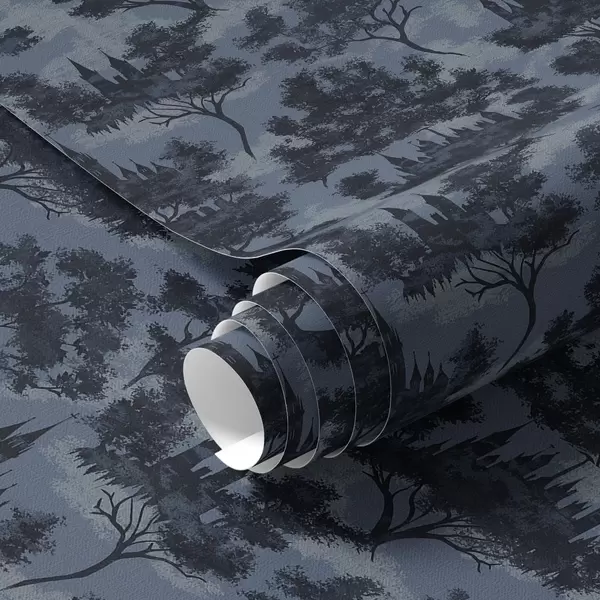 Tapetes Gotikas pilis starp kokiem nakts mežā Nr. a00130v1