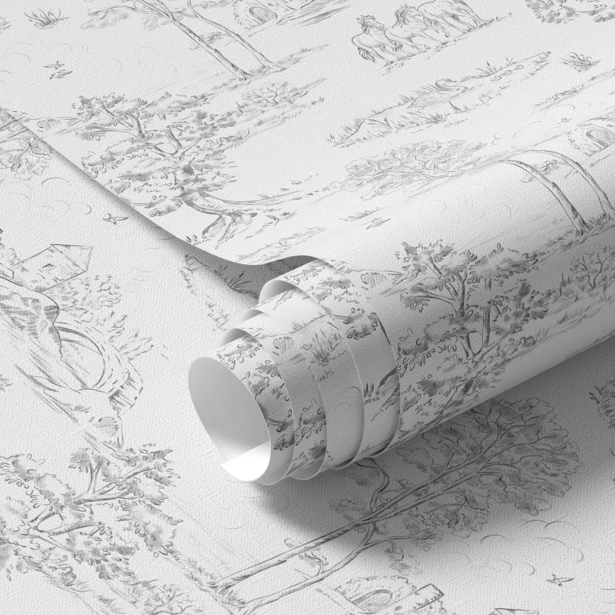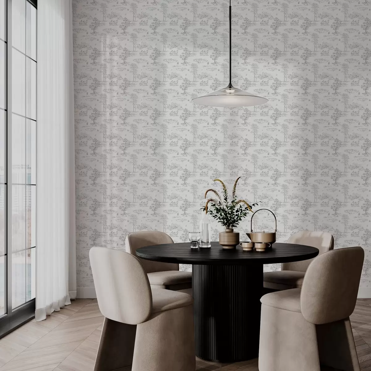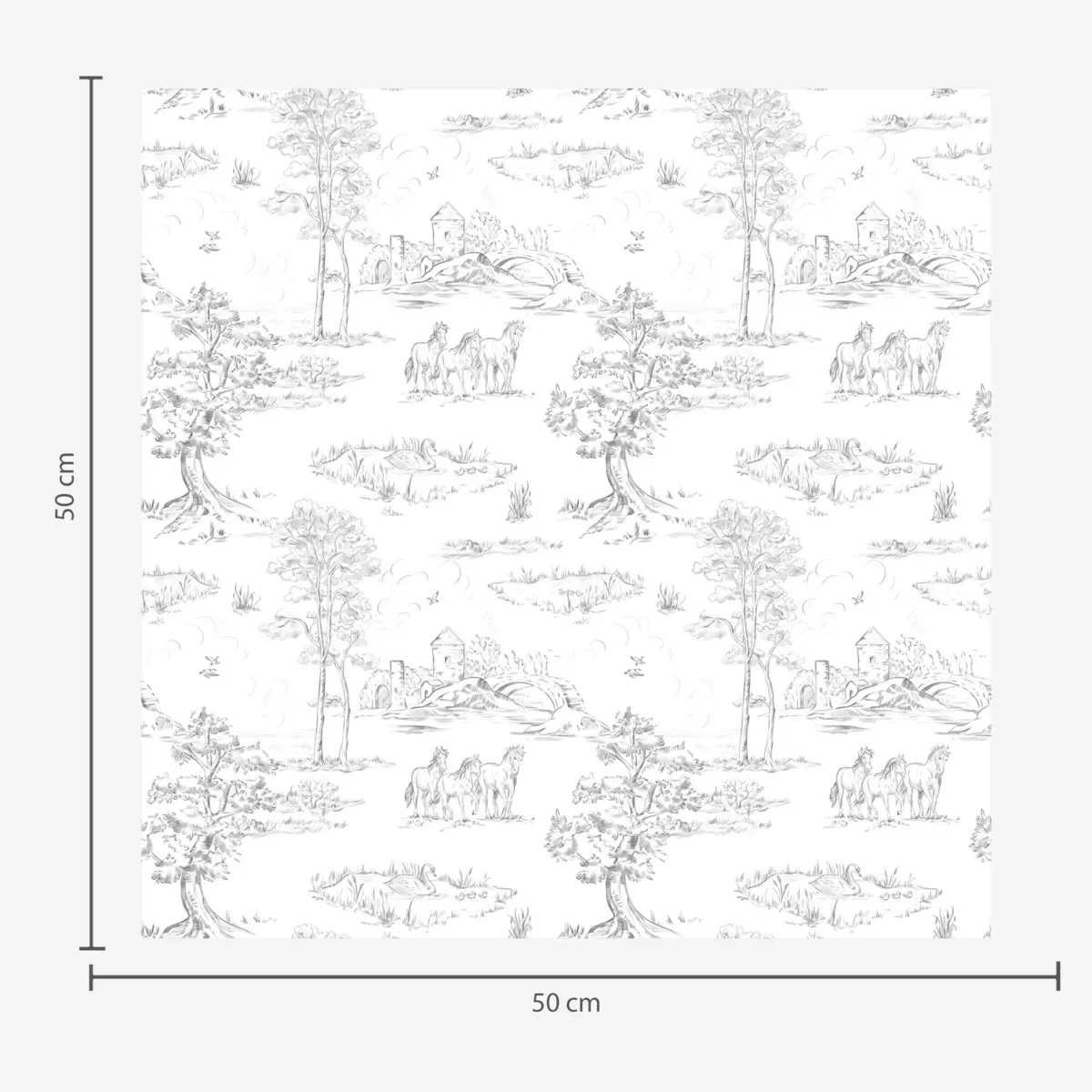 Tapetes Ainava ar zirgiem pelēkā un baltā stilā Nr. a00133v2