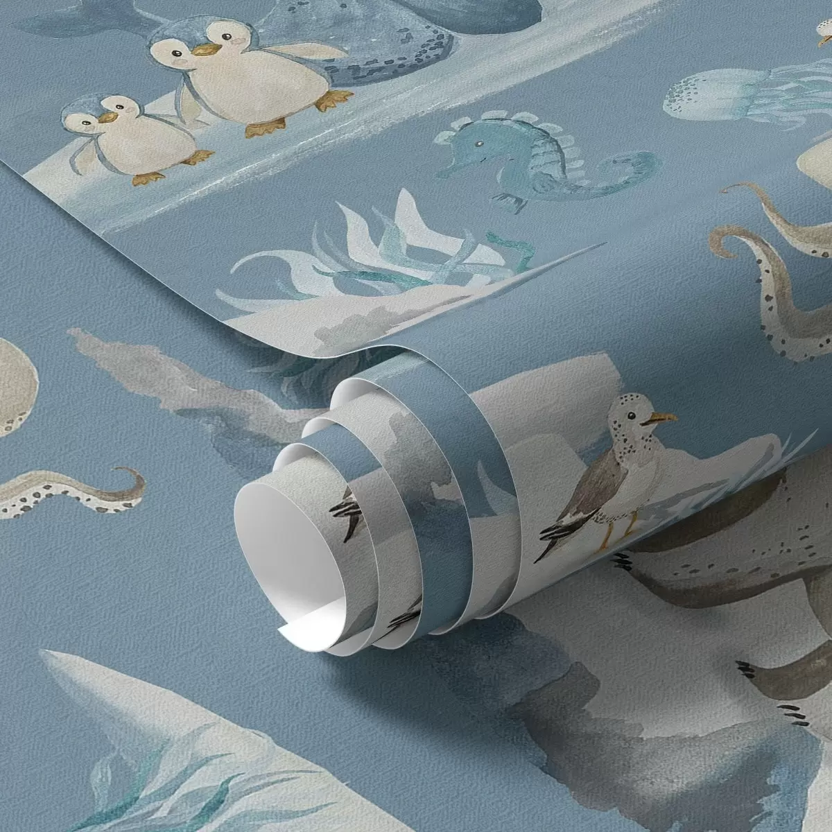 Tapetes Arktiskie dzīvnieki akvareļu stilā bērnu istabai Nr. a00137