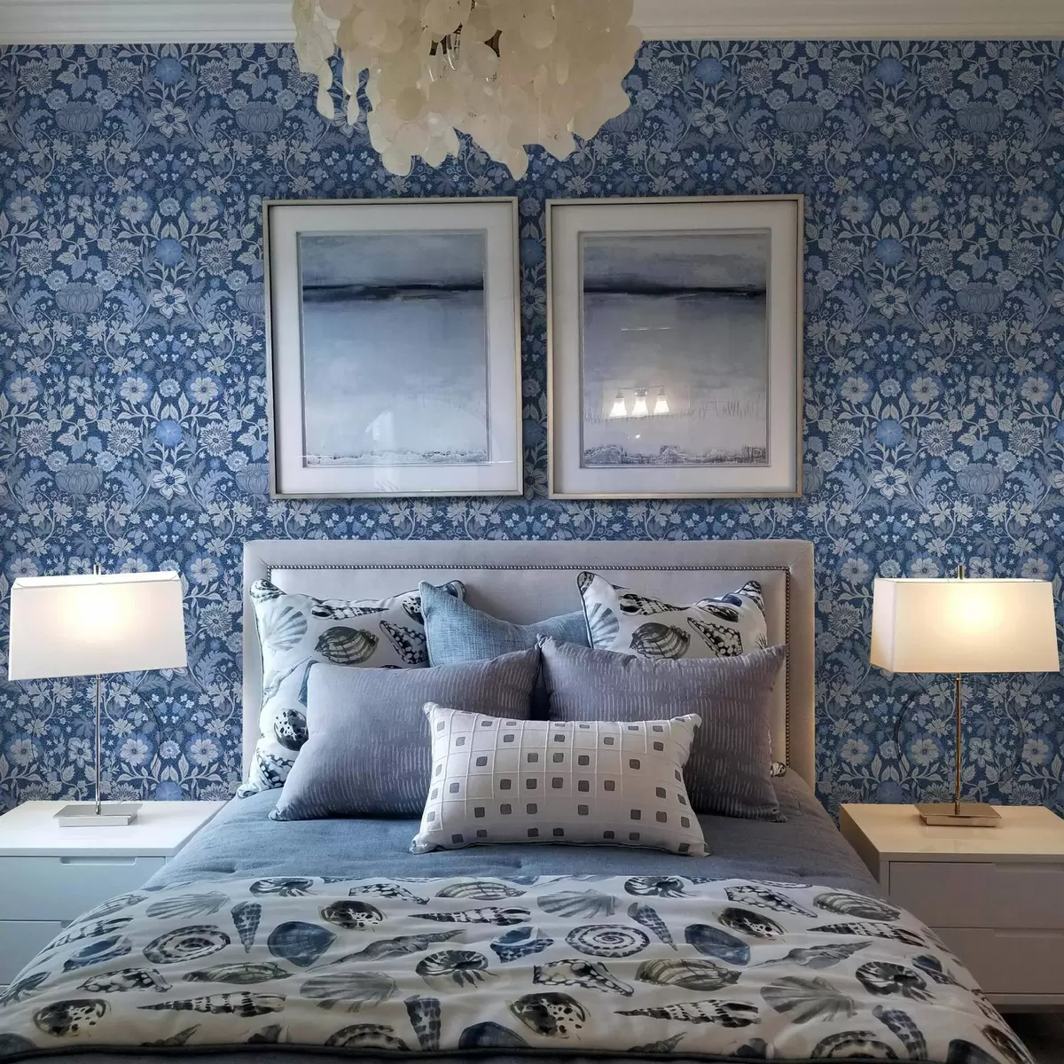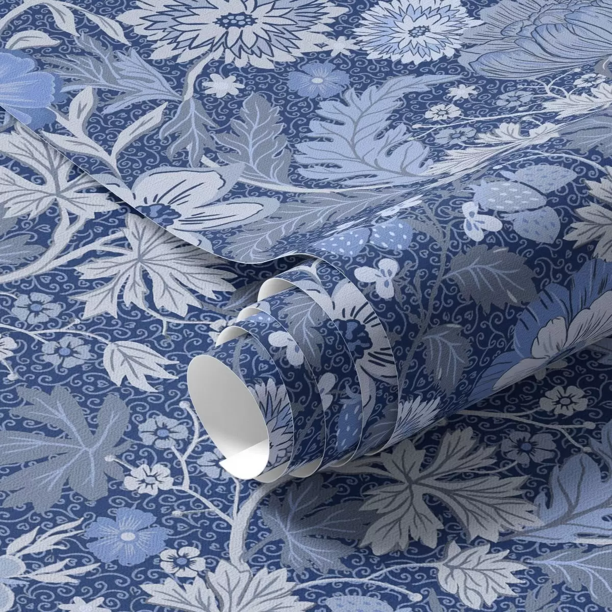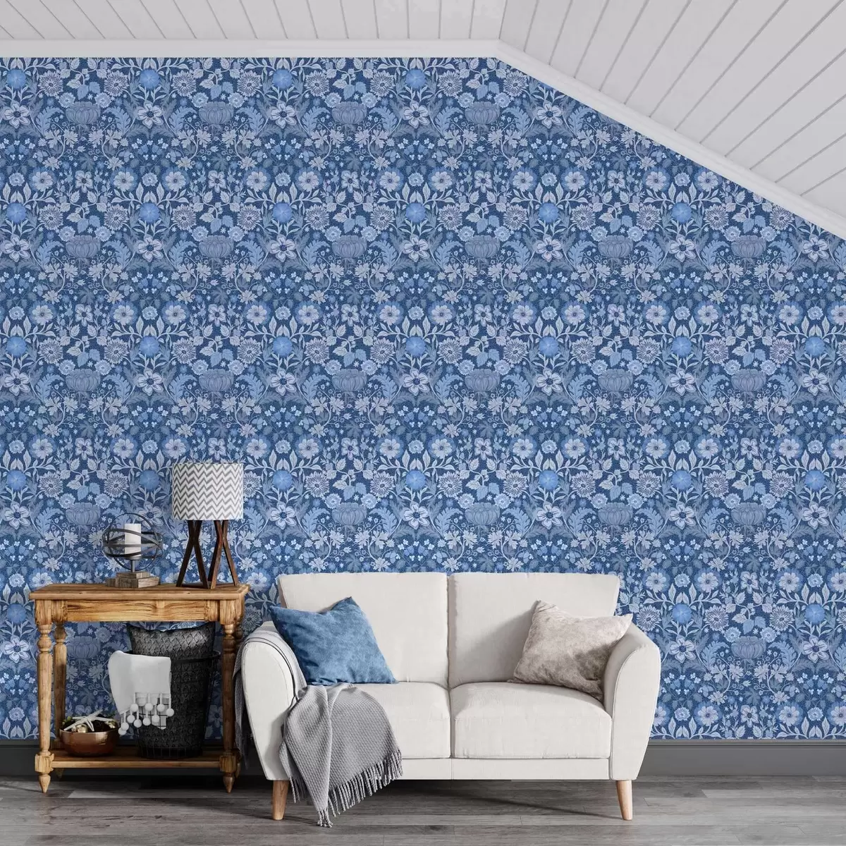 Tapetes Zila botāniskā apdruka vintage stilā Nr. a00145v2
