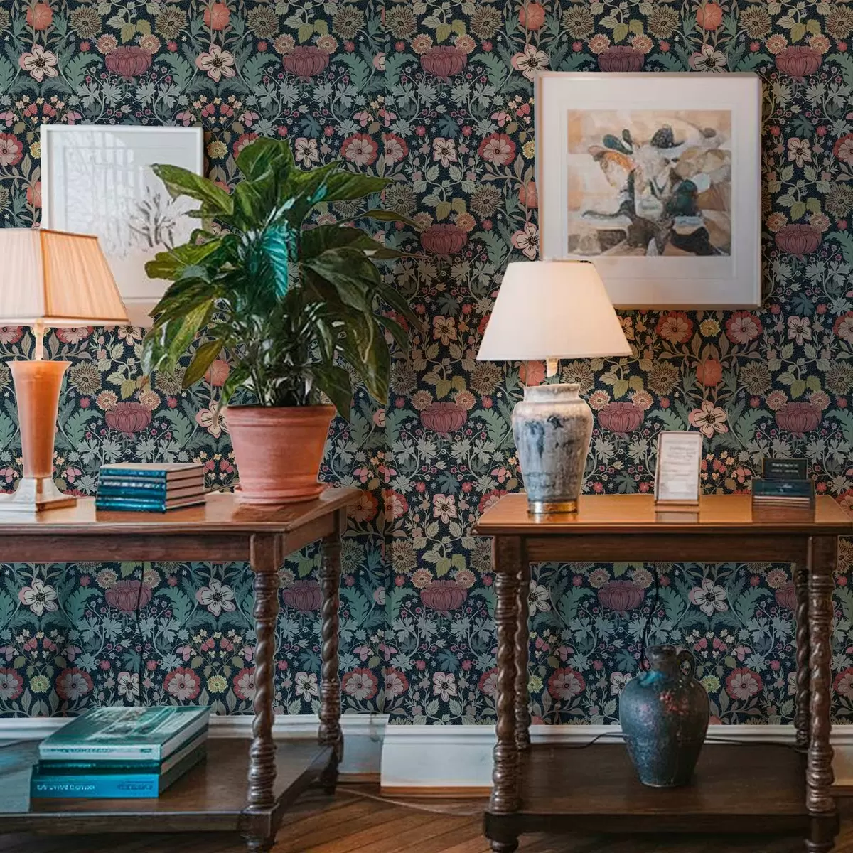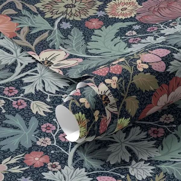 Tapetes Ziedu raksts bordo un zaļā krāsā Nr. a00145v5