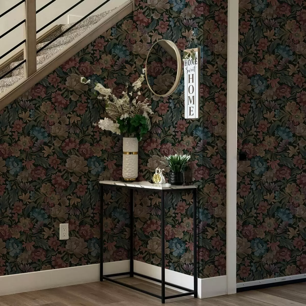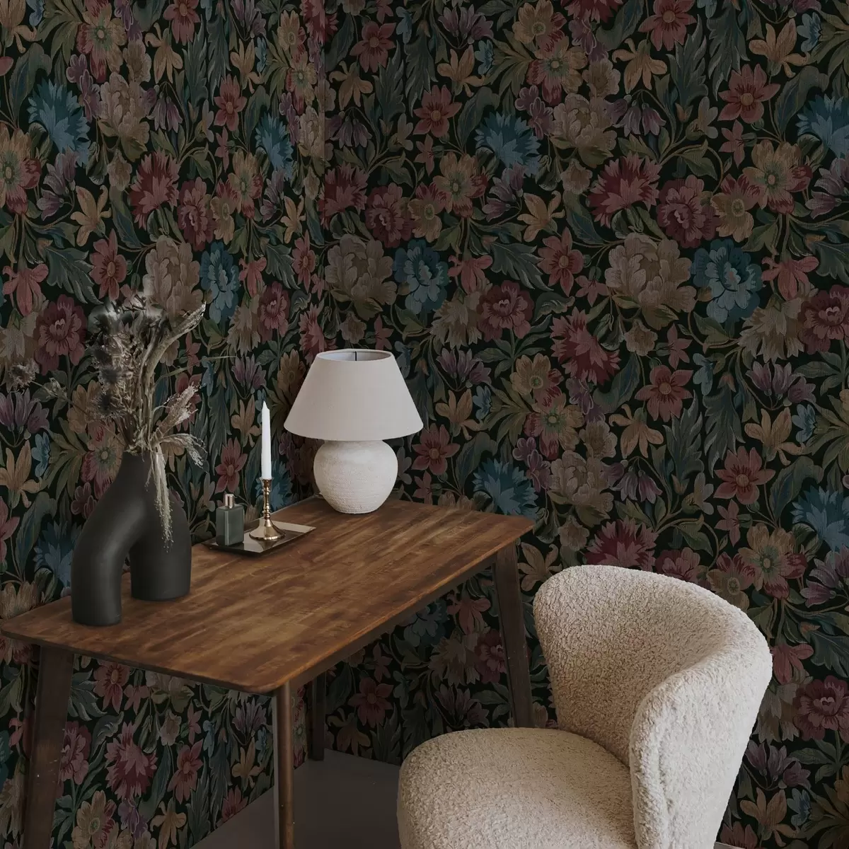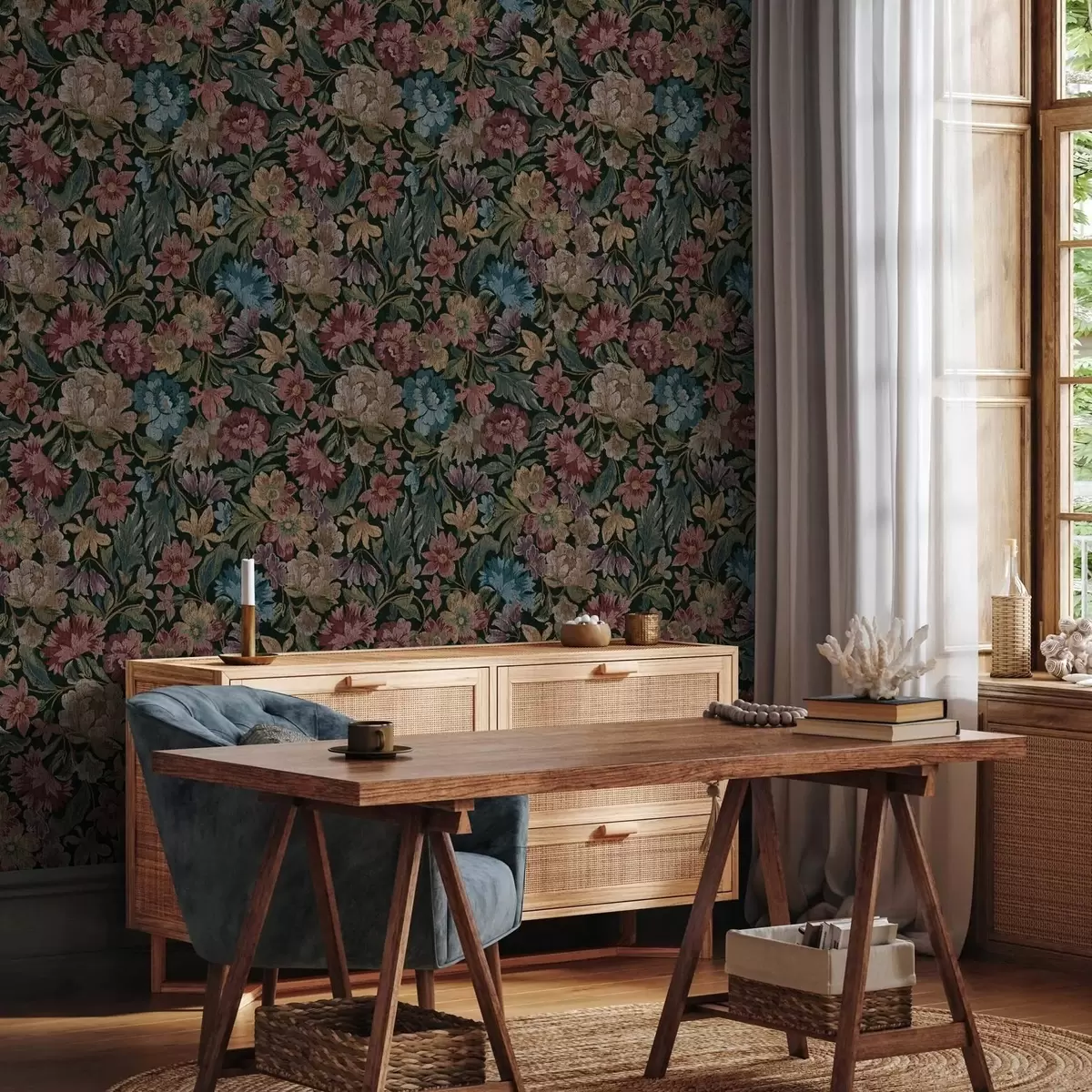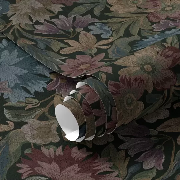 Tapetes Gobelēna tekstūra ar krāsainiem ziediem Nr. a00146