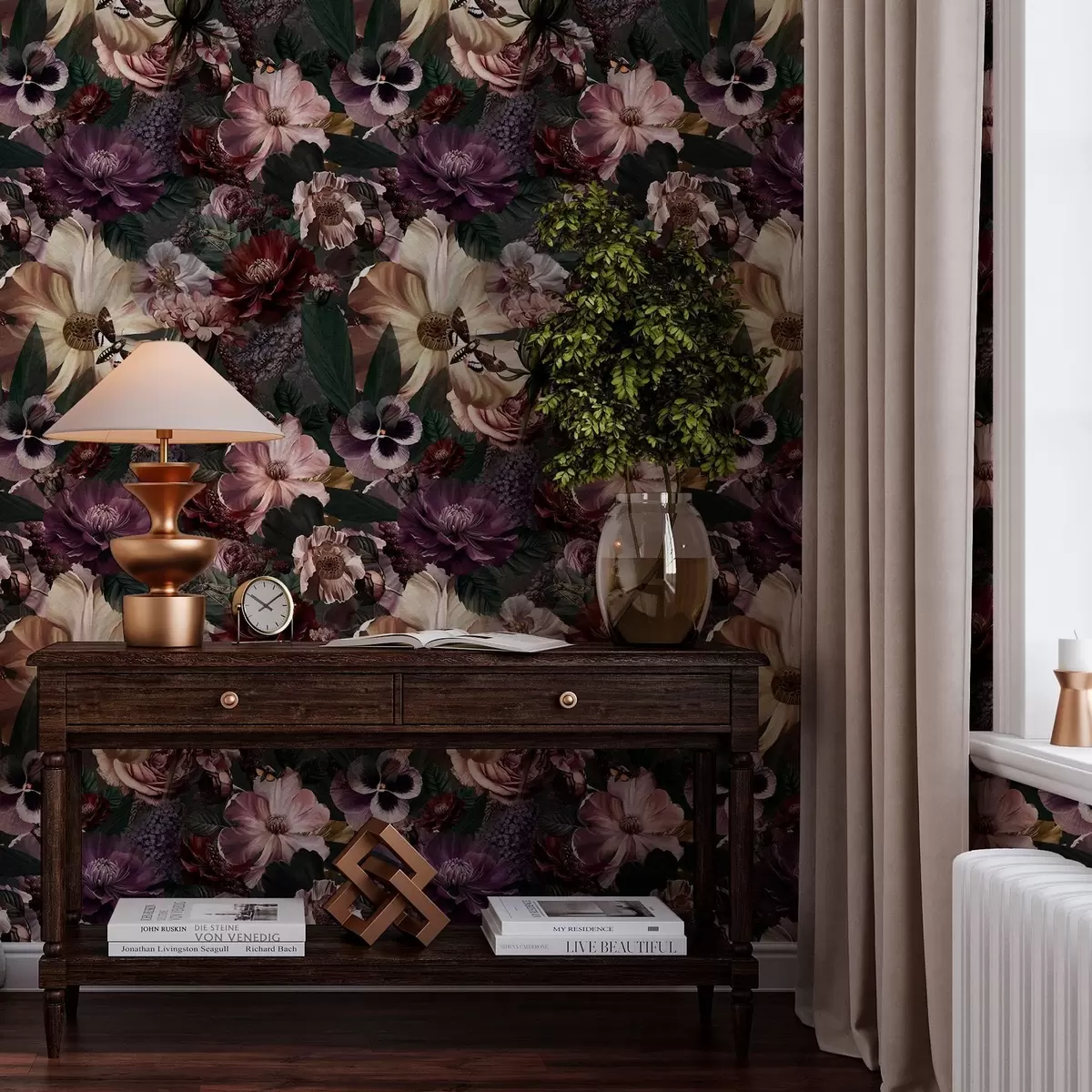 Tapetes Mākslas ziedu apdruka tumšās krāsās Nr. a00147