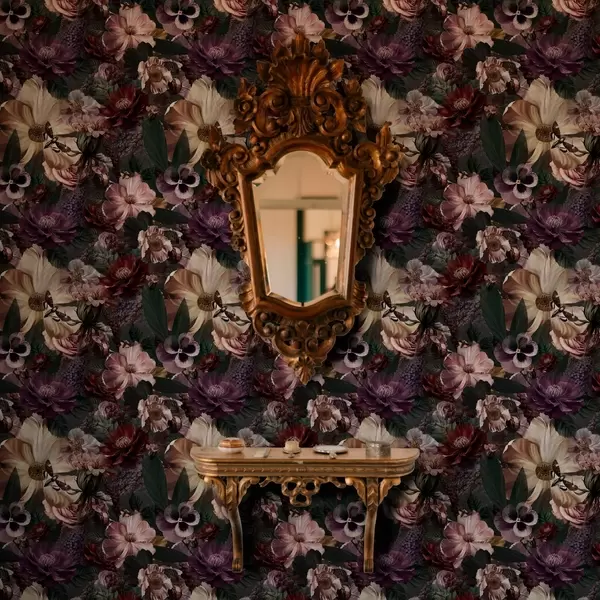 Tapetes Mākslas ziedu apdruka tumšās krāsās Nr. a00147