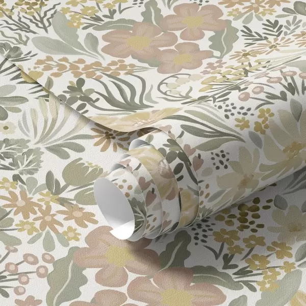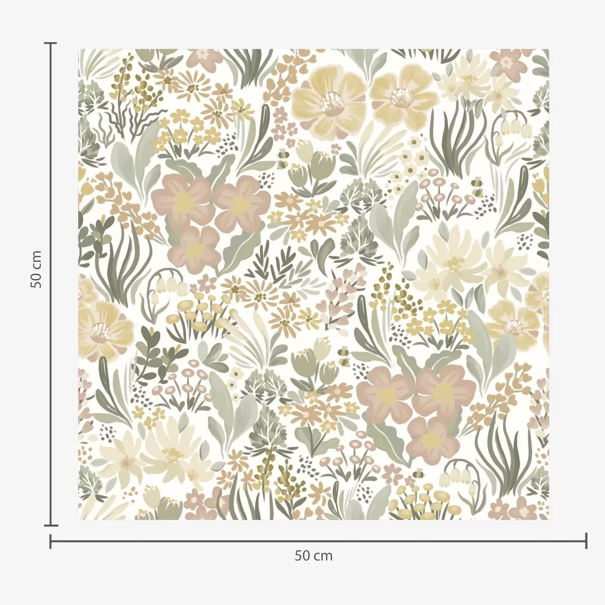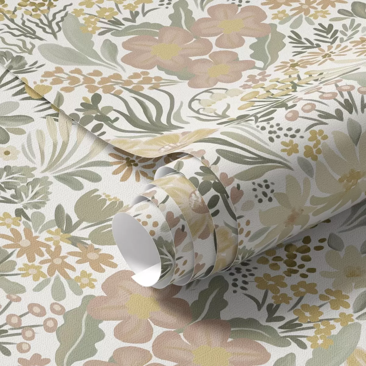 Tapetes Akvareļkrāsaini savvaļas ziedi uz krēmkrāsas fona Nr. a00154