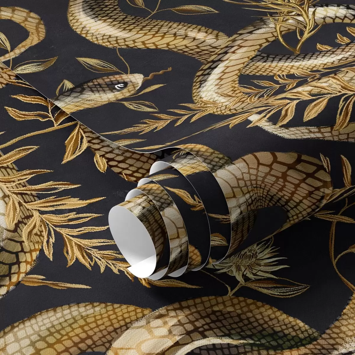 Tapetes Čūskas un ziedi uz tumša fona Nr. a00158