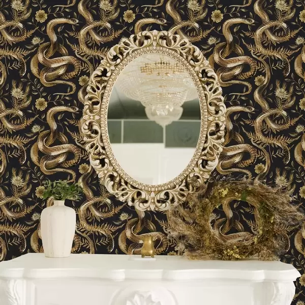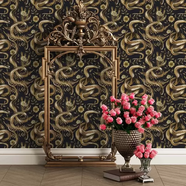 Tapetes Čūskas un ziedi uz tumša fona Nr. a00158