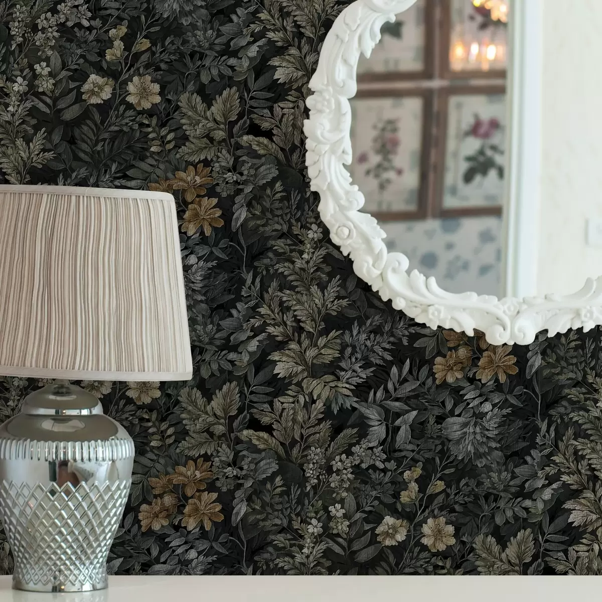 Tapetes Tumša apdruka ar savvaļas ziediem Nr. a00159