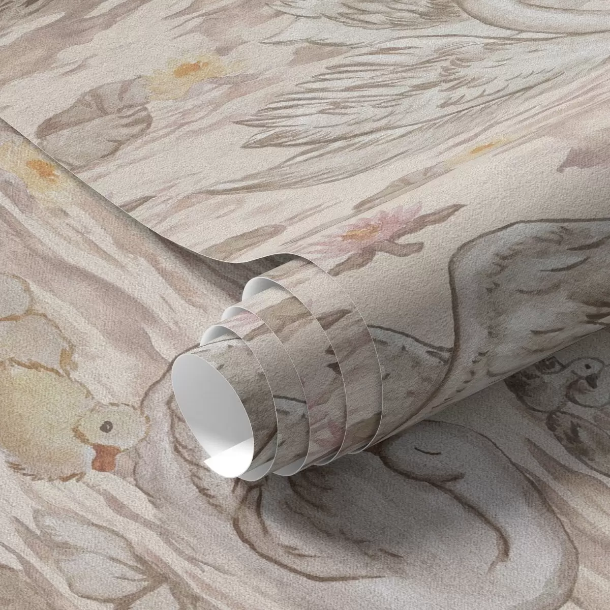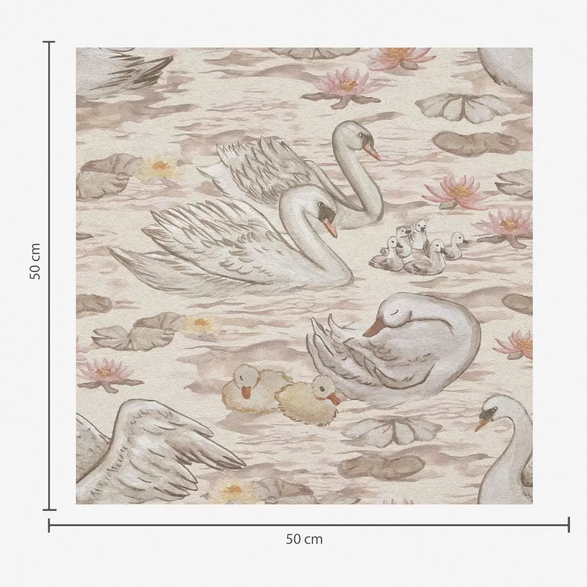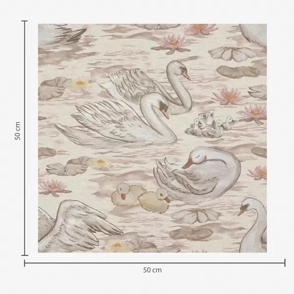 Tapetes Gulbji ar cāļiem uz rozā fona ar ūdens lilijām Nr. a00176