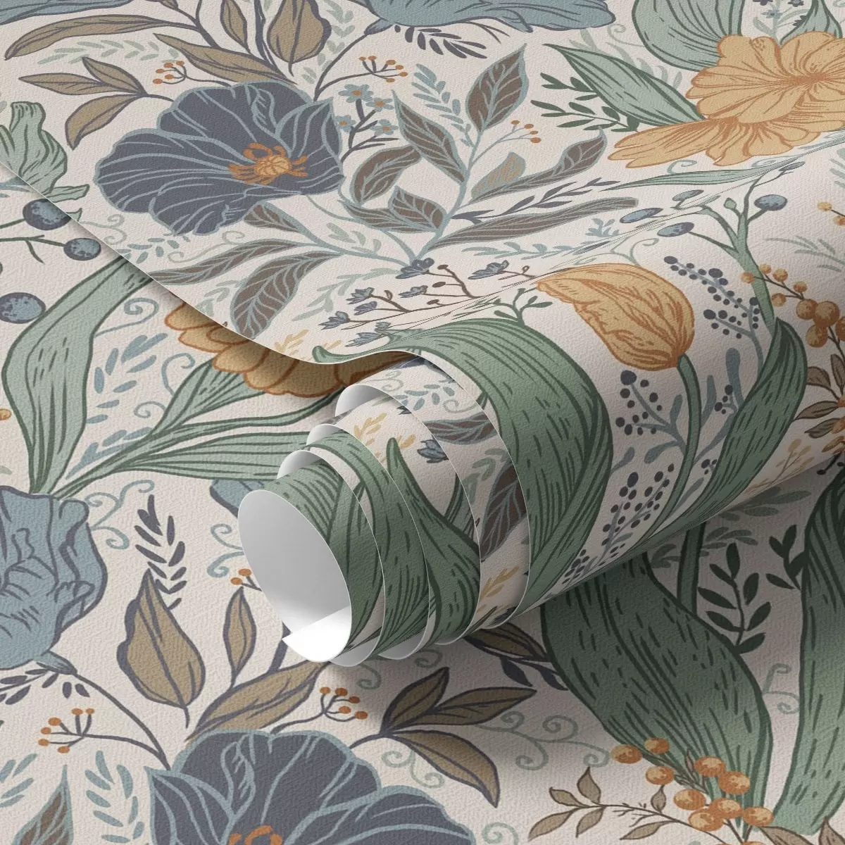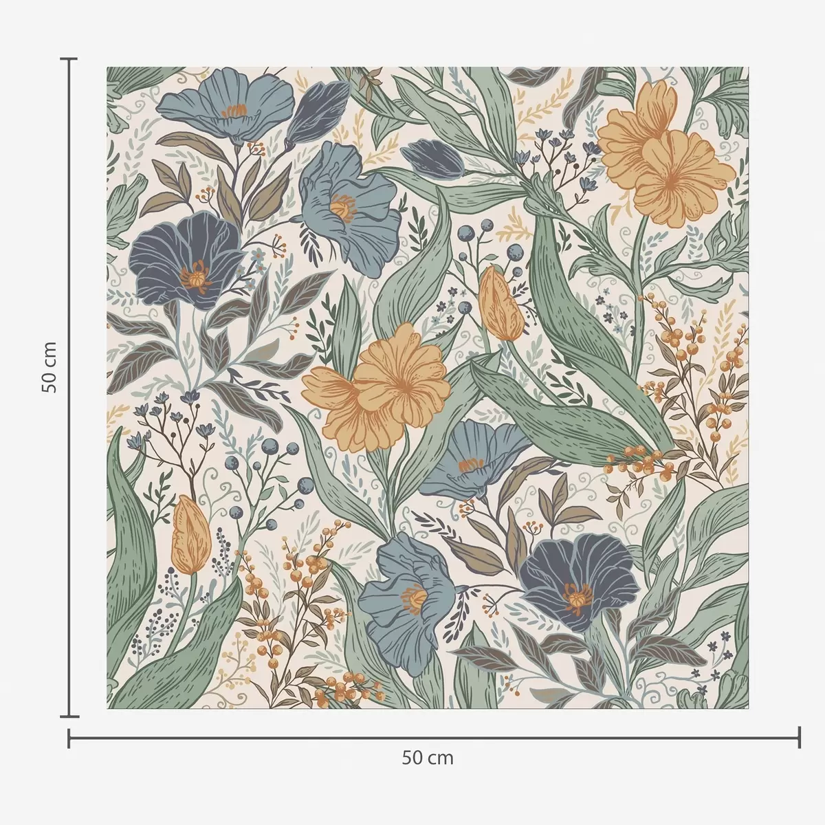 Tapetes Ar roku zīmēta pļavas ziedu ilustrācija siltās krāsās a00180