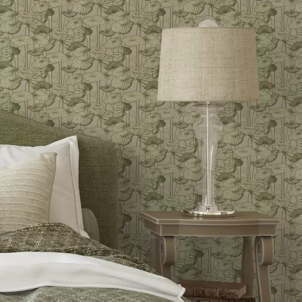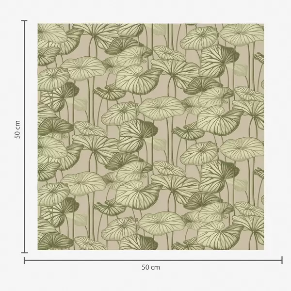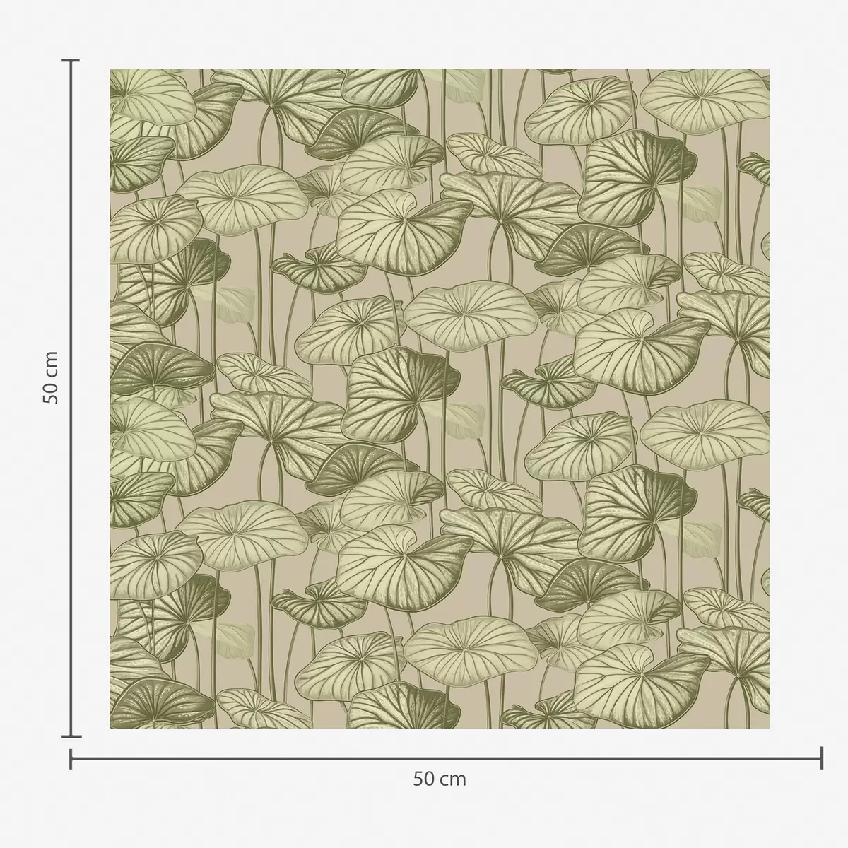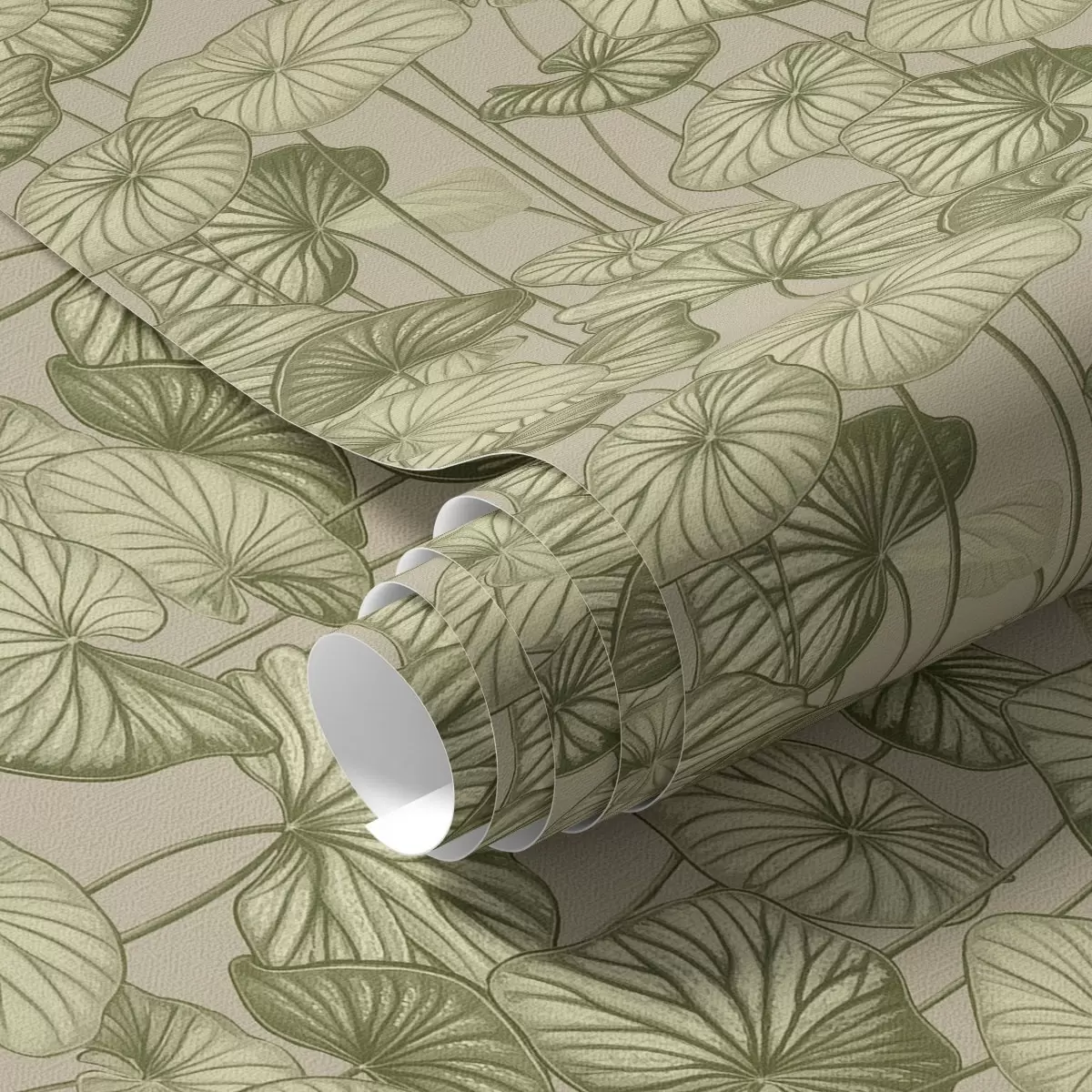 Tapetes Grafiskās lotosa lapas retro stilā uz bēša fona Nr. a00188