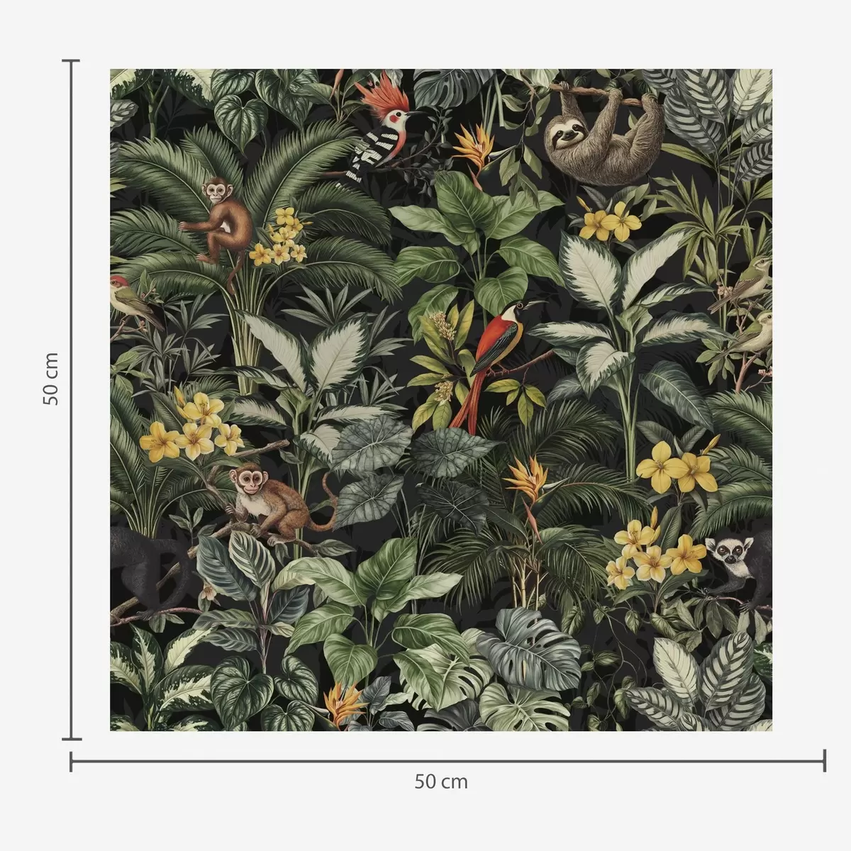 Tapetes Tropu džungļi ar pērtiķiem, putniem un biezu lapotni Nr. a00191