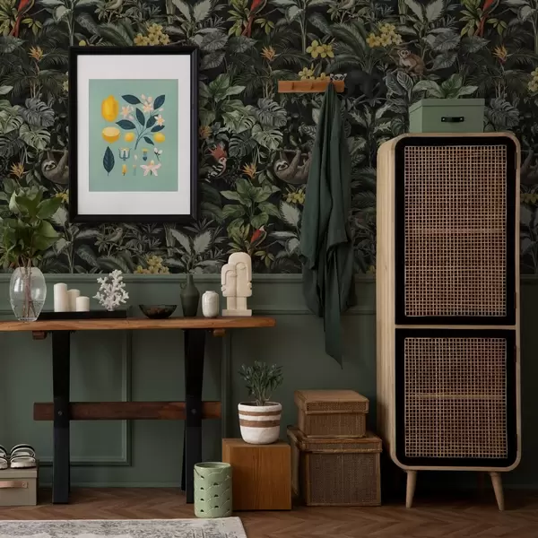 Tapetes Tropu džungļi ar pērtiķiem, putniem un biezu lapotni Nr. a00191