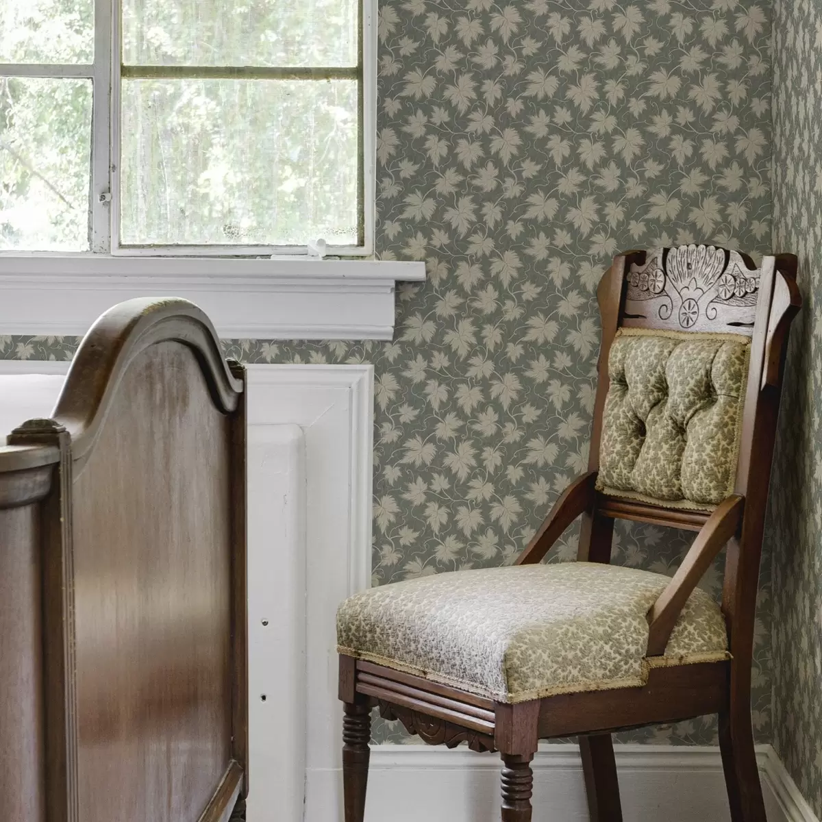 Tapetes Balta vīnogu lapa uz zaļa fona Nr. a00194