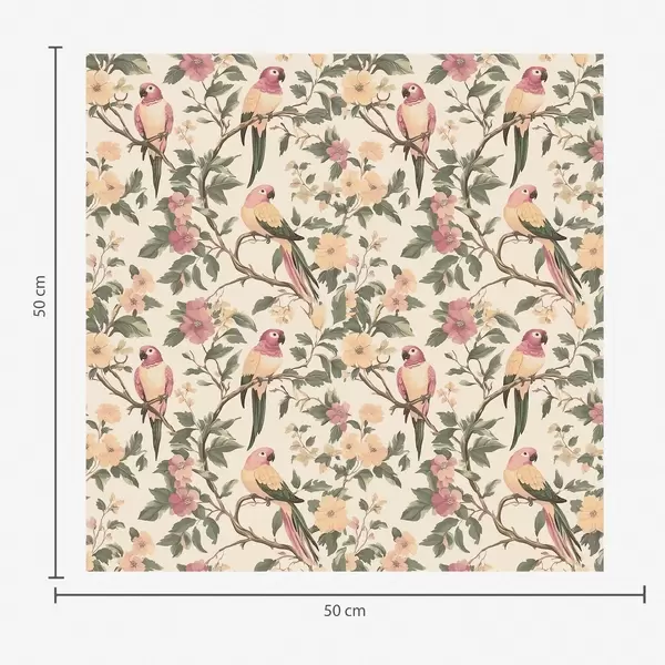 Tapetes Tropu putni uz ziedošiem zariem pasteļtoņos Nr. a00199