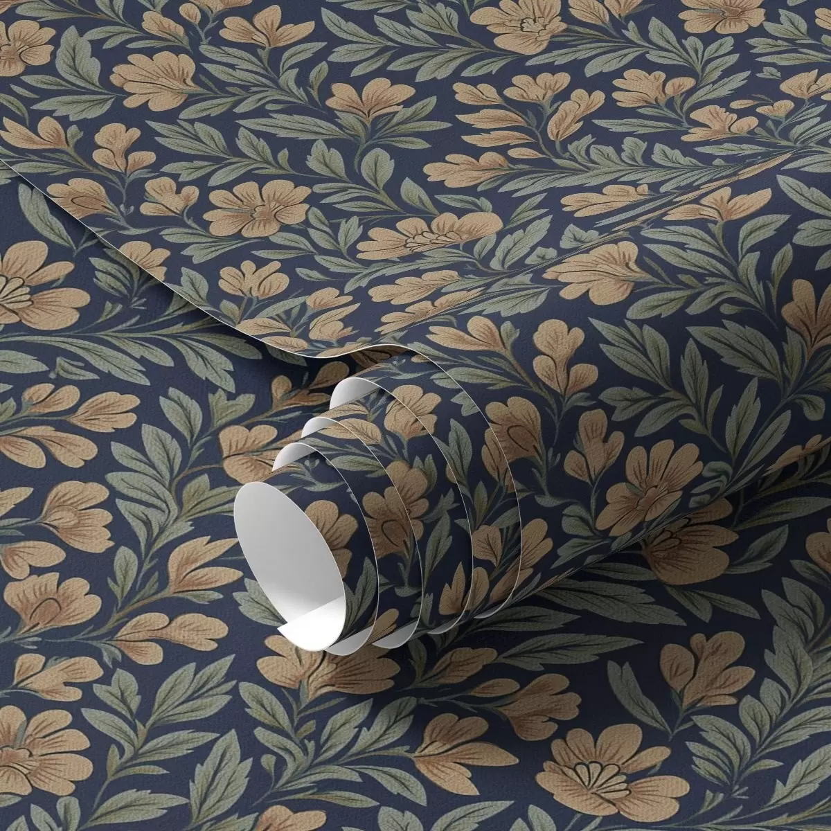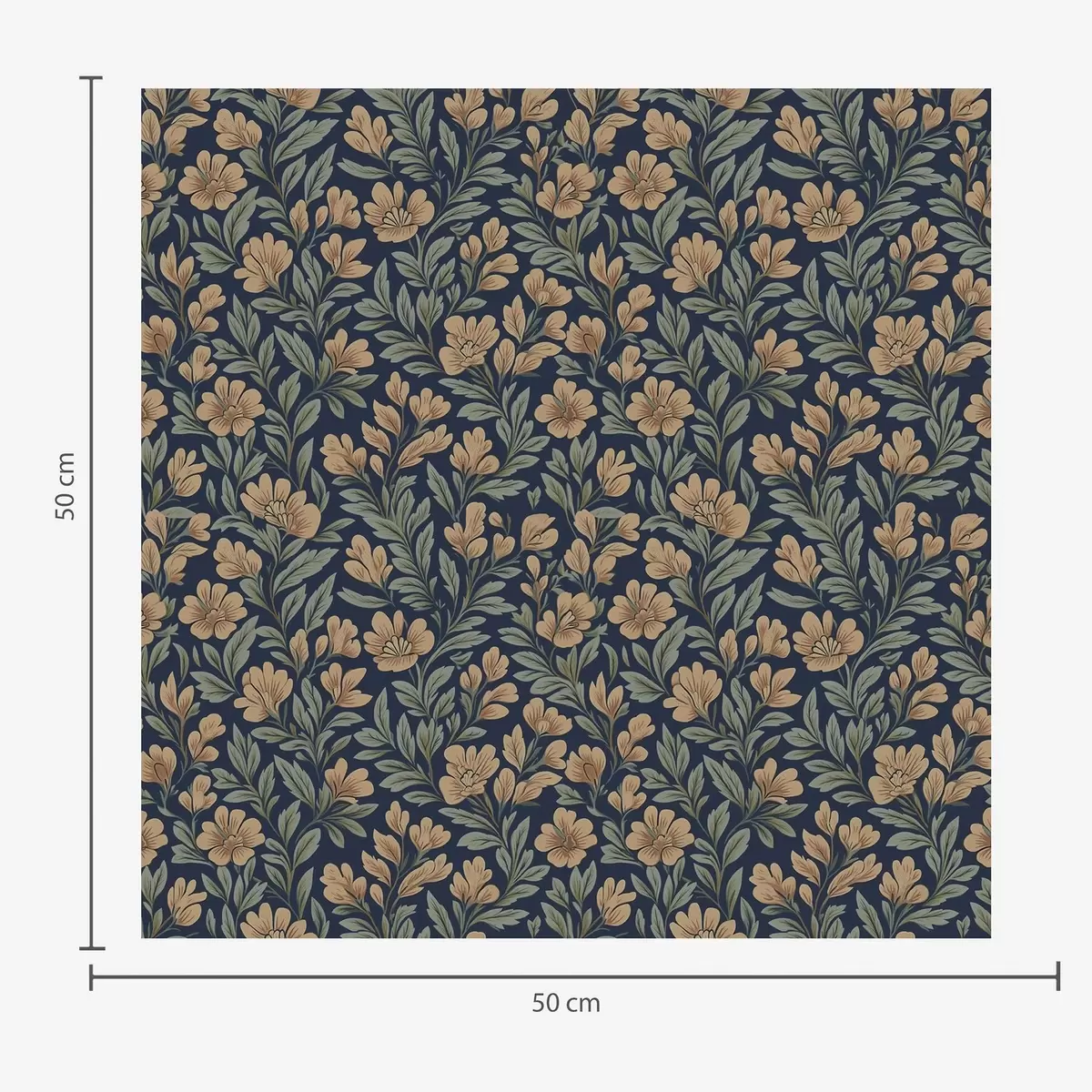 Tapetes Oranžas puķes uz tumši zila fona vintage stilā Nr. a00200