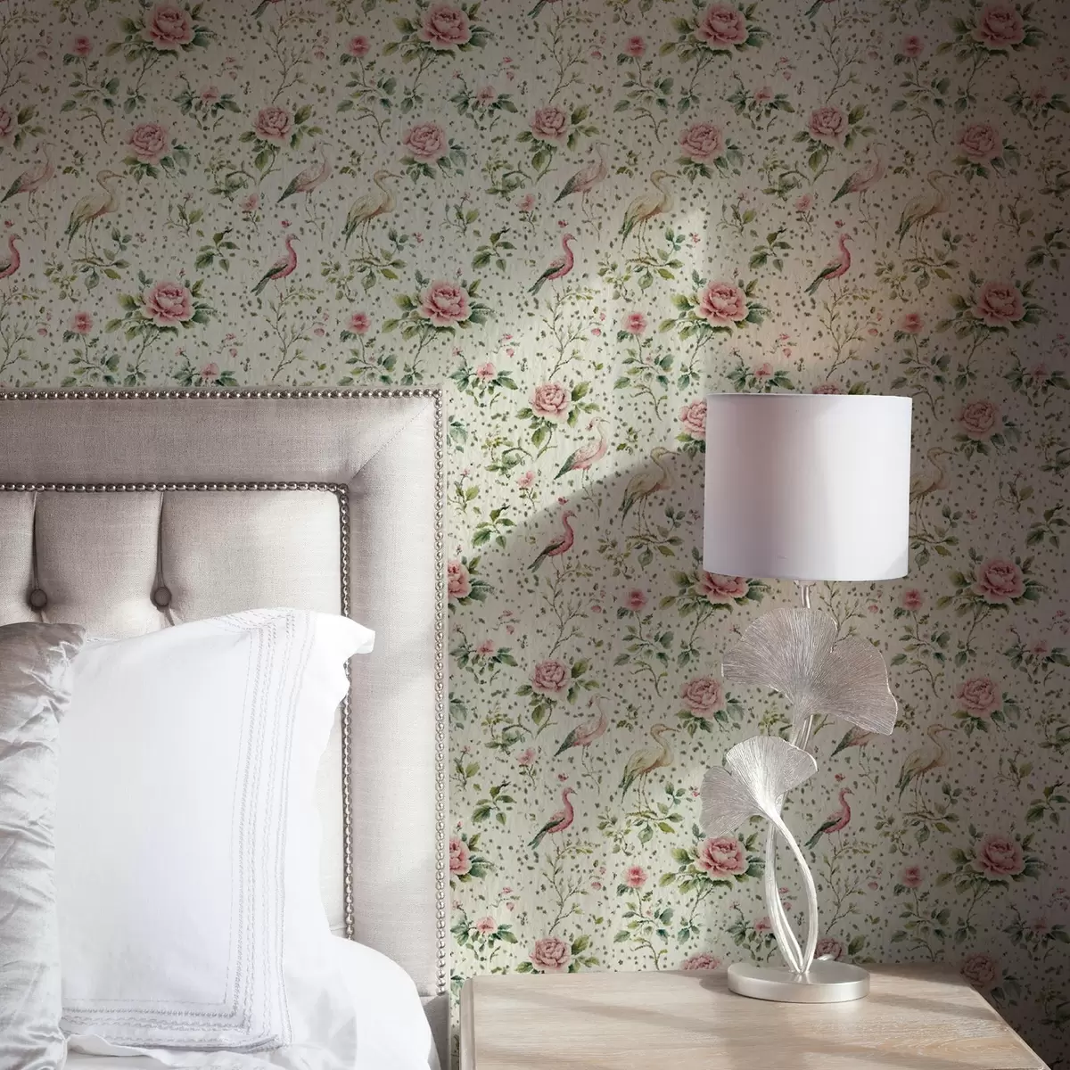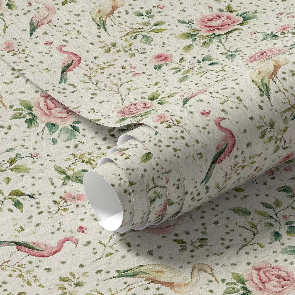Tapetes Pasteļrozā rozā rozes un putni nobružātā šiks stilā Nr. a00201