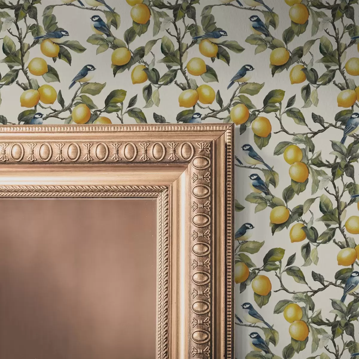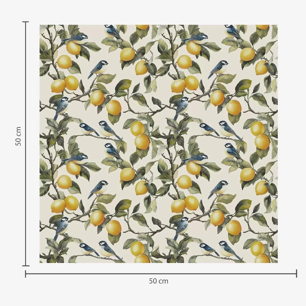 Tapetes Putni un citroni uz zariem, akvareļu botāniskais zīmējums Nr. a00207