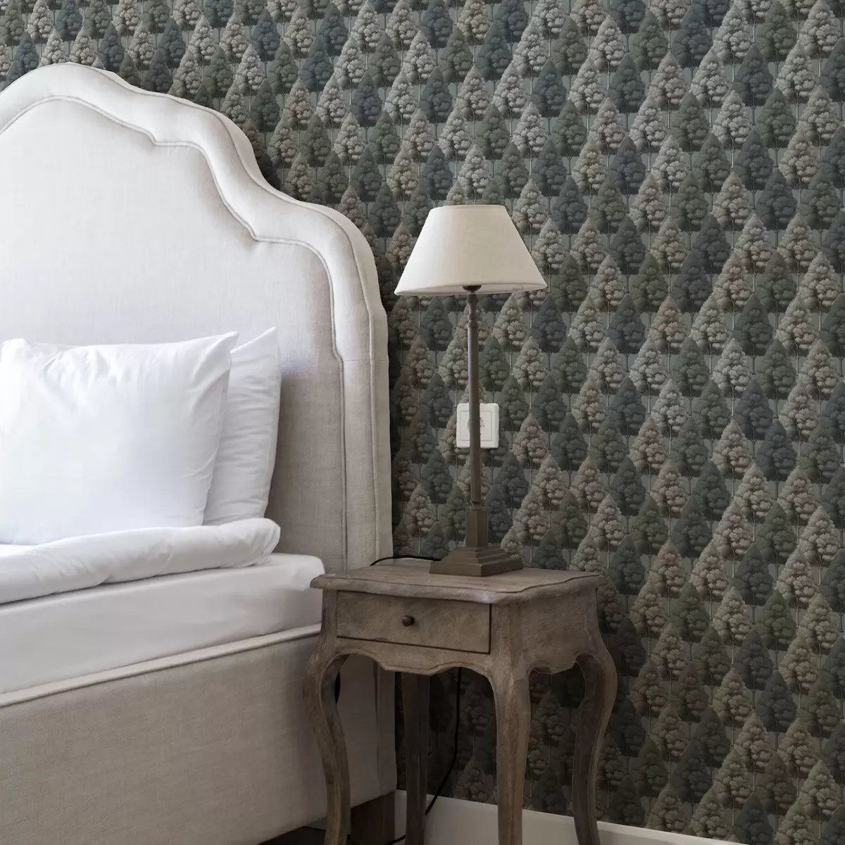 Tapetes Ģeometriskais meža raksts ar kokiem zaļās krāsās Nr. a00209