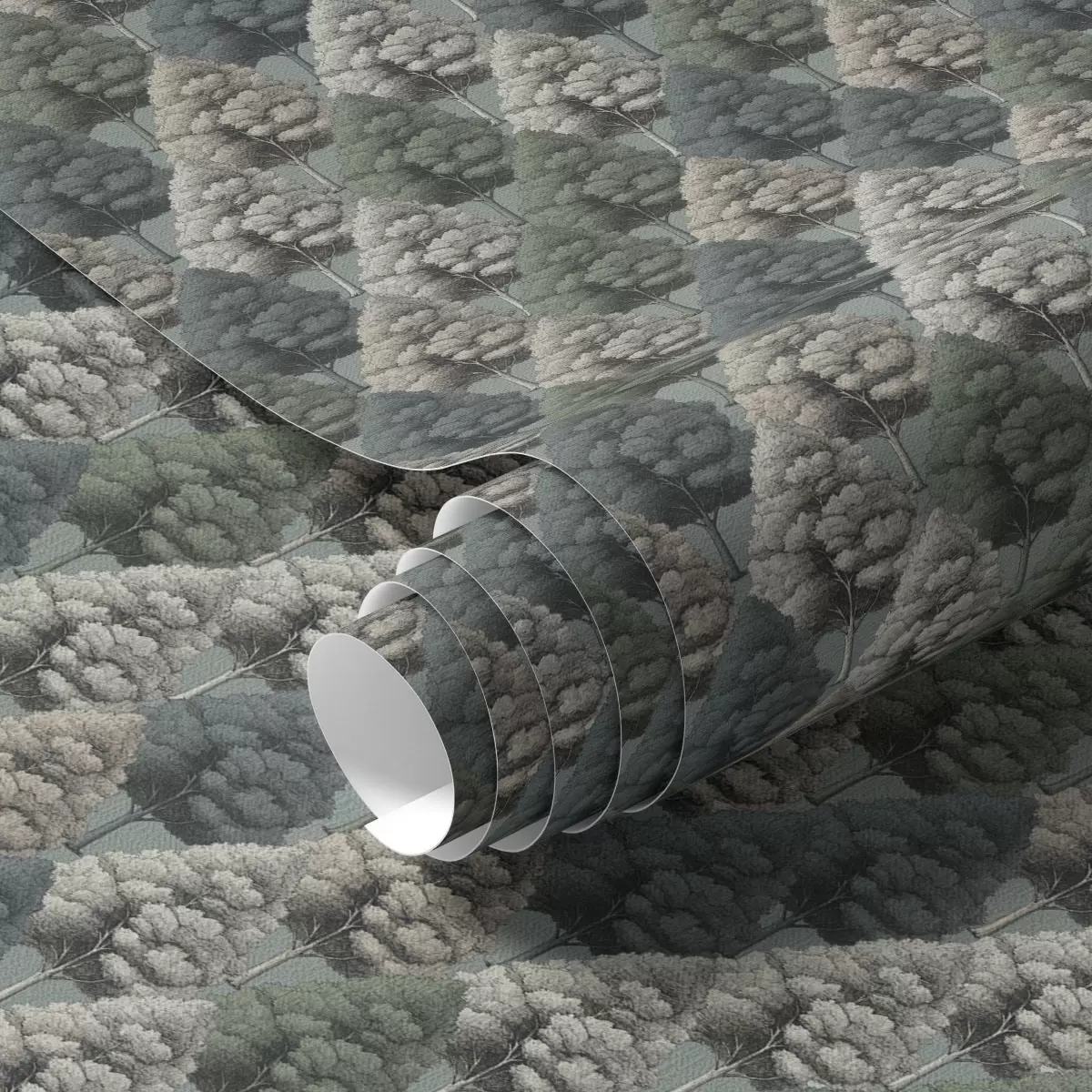 Tapetes Ģeometriskais meža raksts ar kokiem zaļās krāsās Nr. a00209