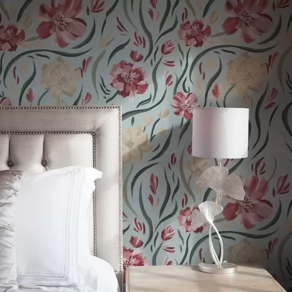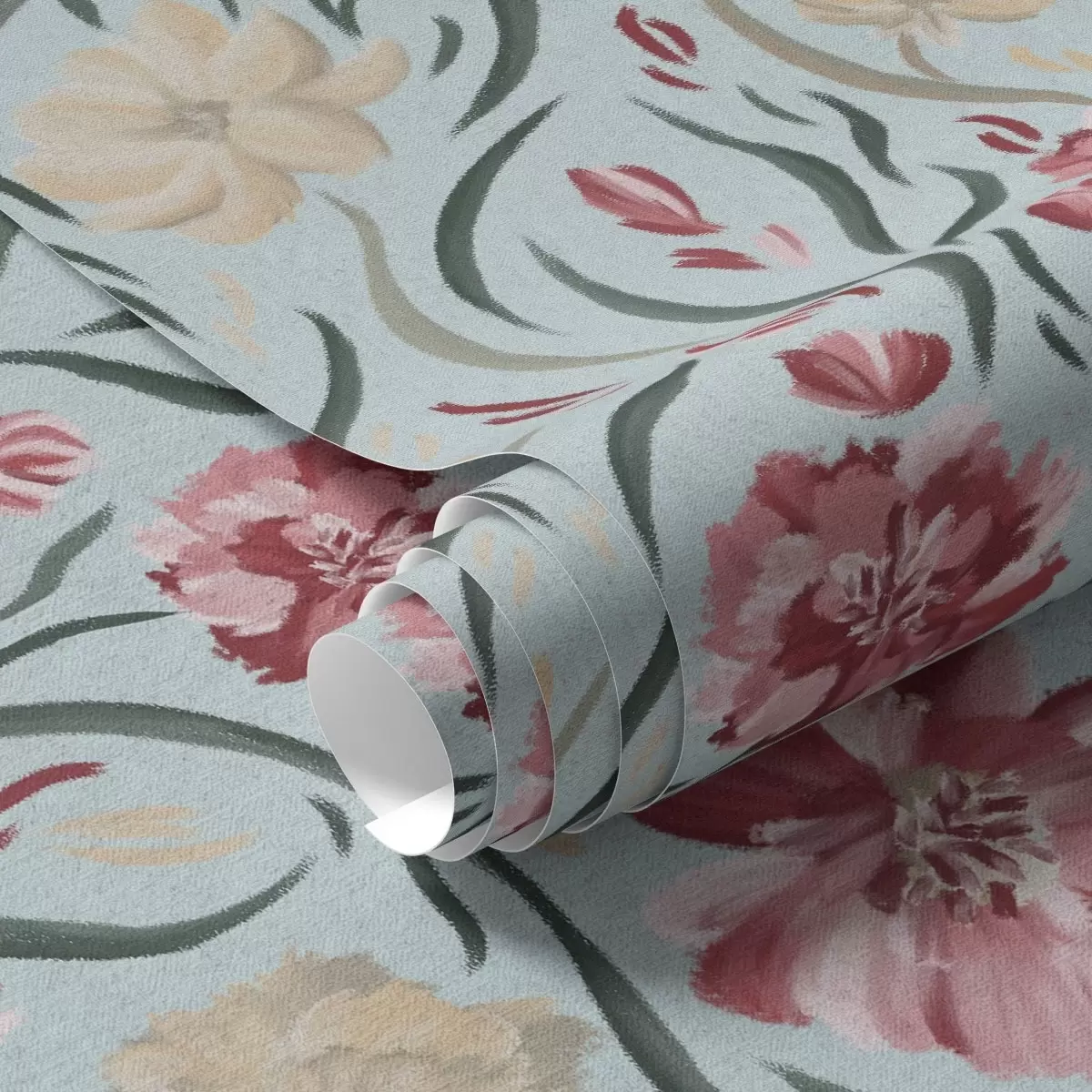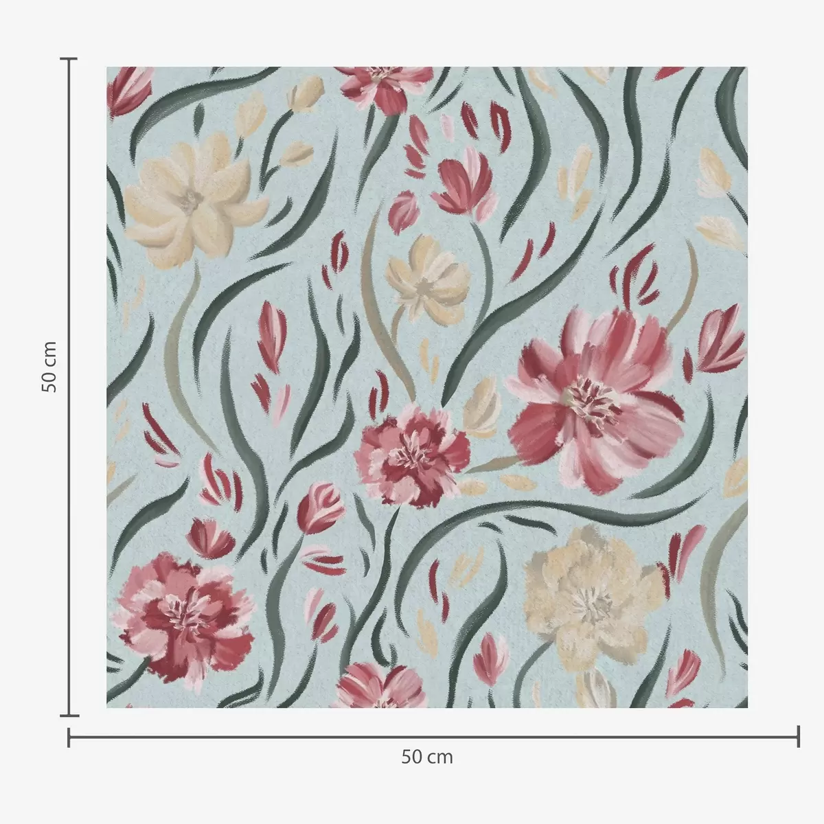 Tapetes Akvareļu ziedi uz zila fona, sarkans un bēšs raksts Nr. a00216
