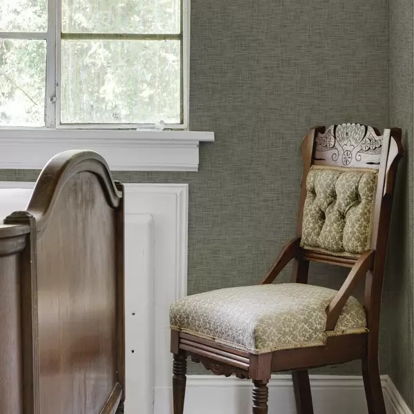 Tapetes Pelēki zaļa auduma tekstūra, lina režģa raksts Nr. a00235