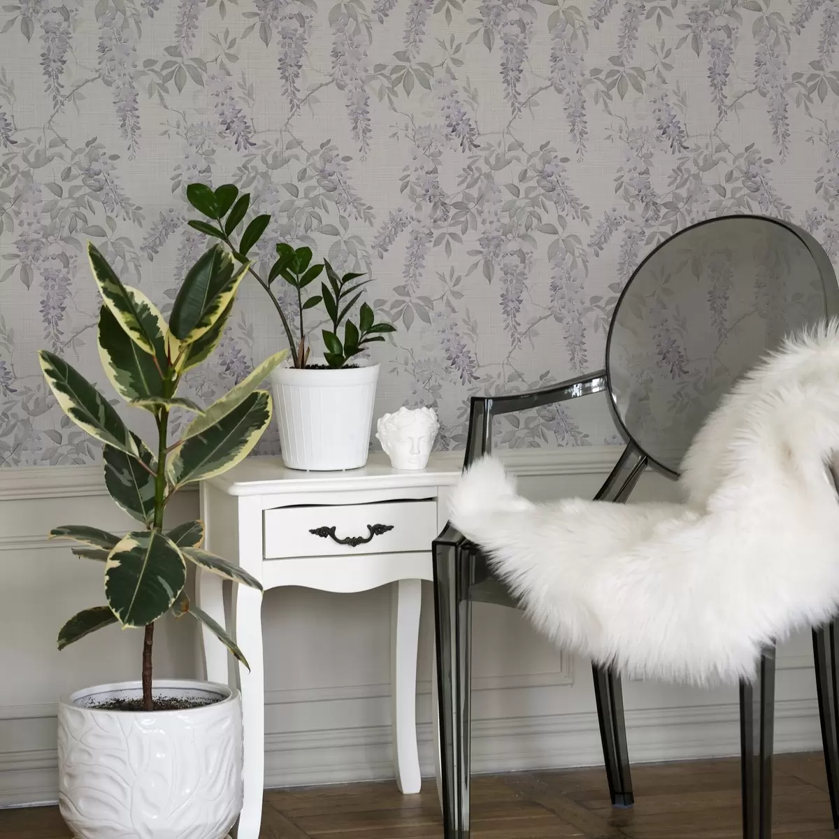 Tapetes Ceriņu vistērija uz balta fona, akvareļu stilā a00239
