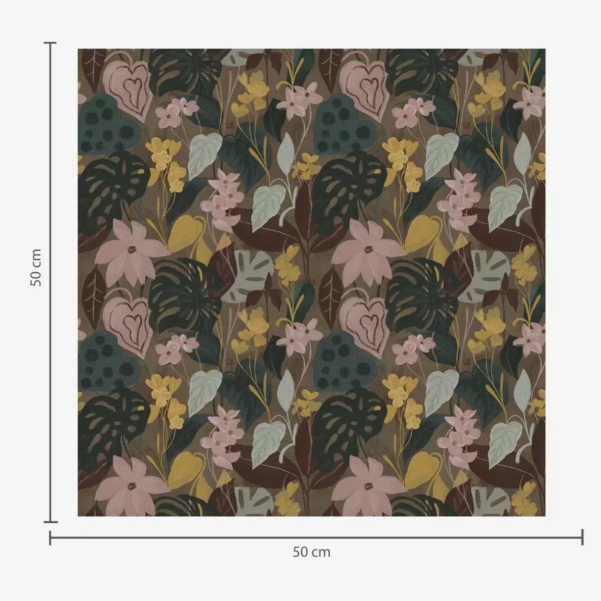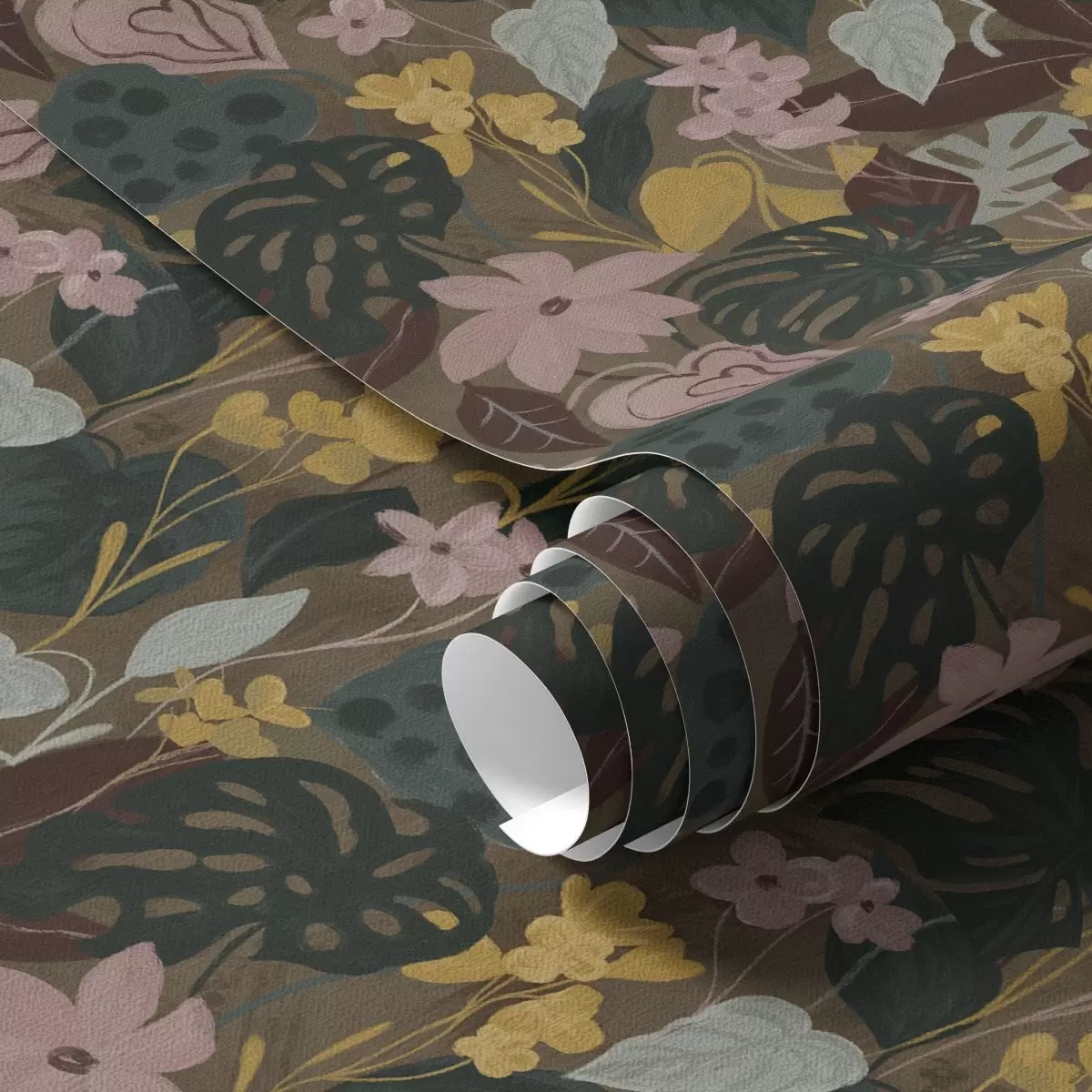 Tapetes Tumši tropu lapas un ziedi blīvā glezna blīvā glezna blīva glezna Nr. a00244