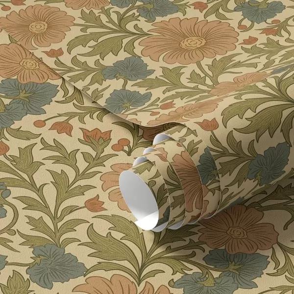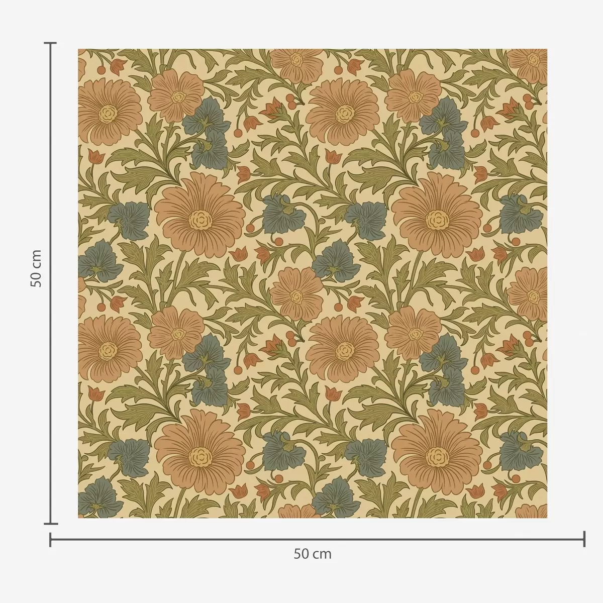 Tapetes Retro modelis ar oranžiem un ziliem ziediem Nr. a00245