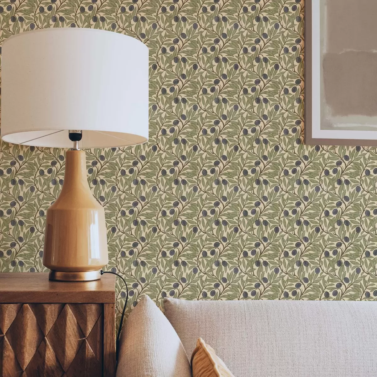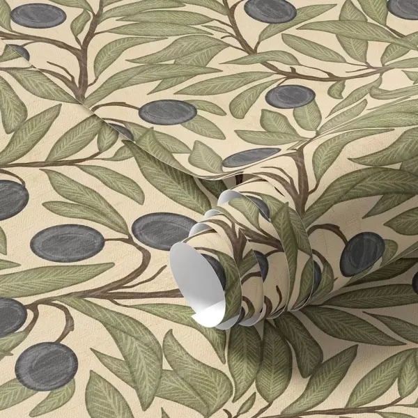 Tapetes Olīvas uz zariem siltā olīvu paletē Nr. a00246
