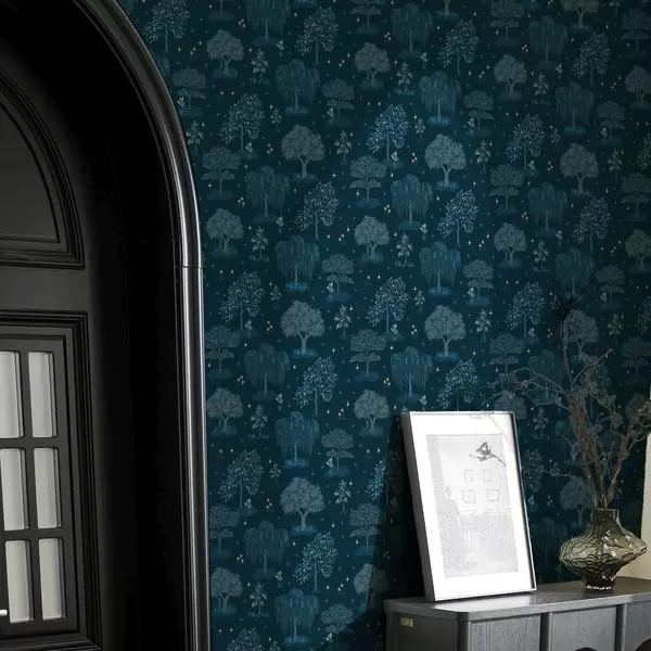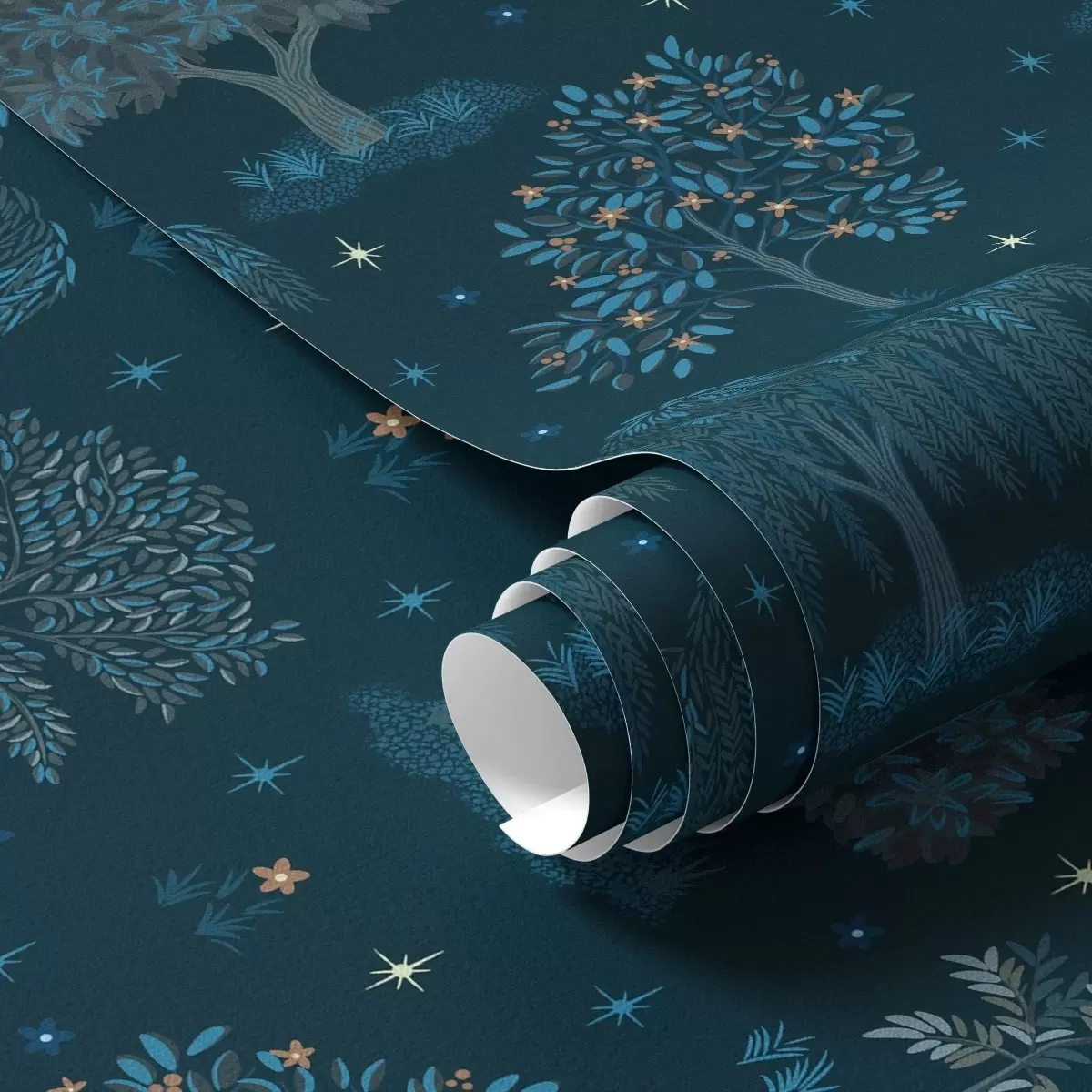 Tapetes Pasaku nakts mežs ar zvaigznēm un dekoratīviem kokiem Nr. a00248