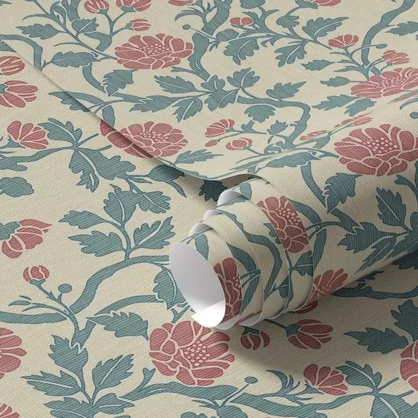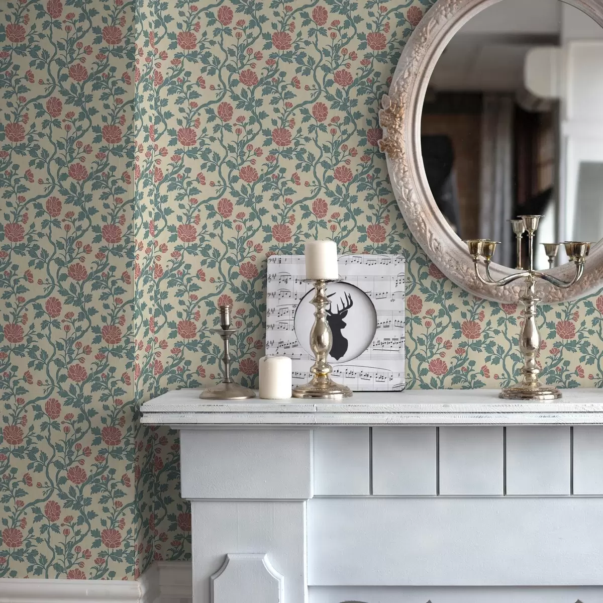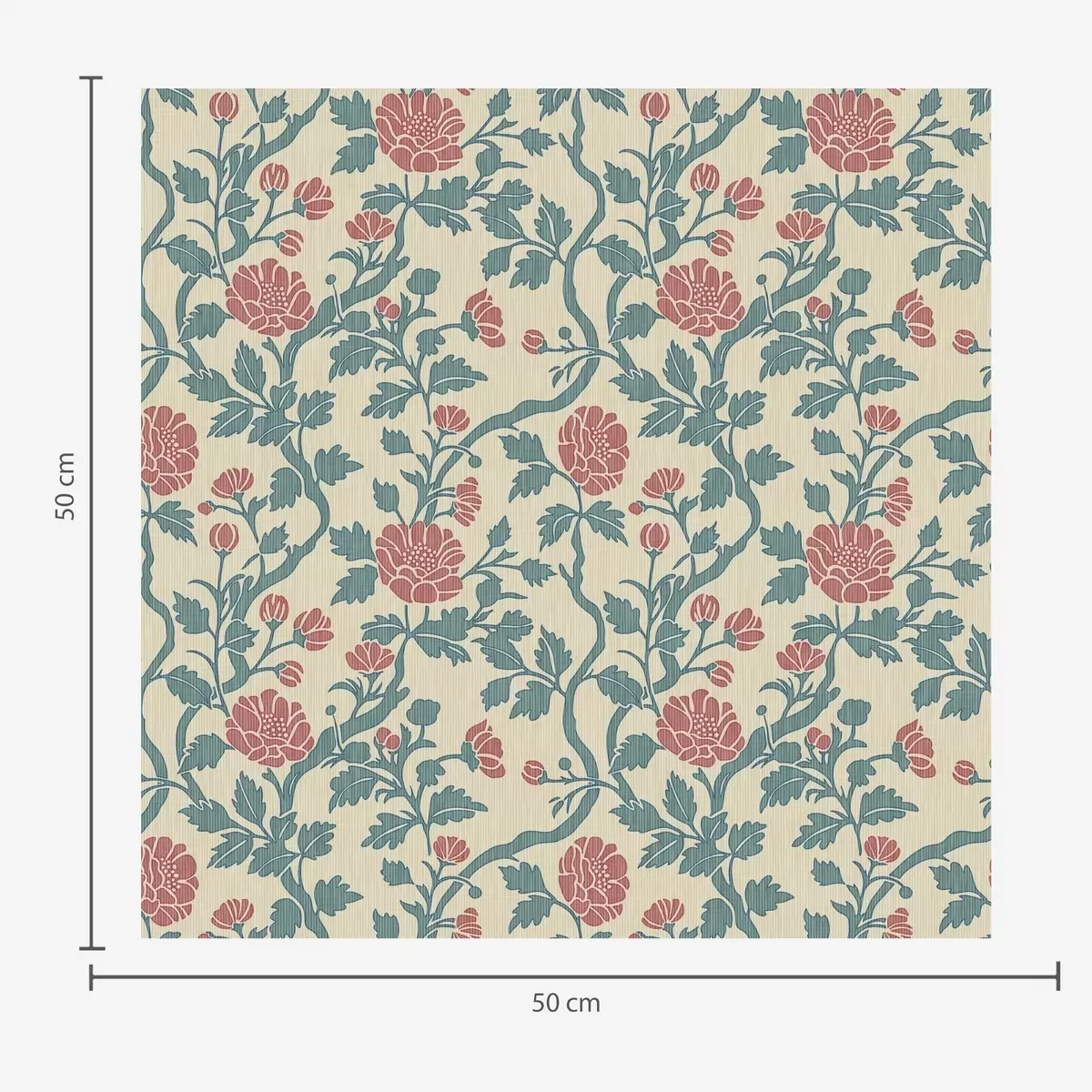 Tapetes Retro raksts ar sarkaniem un zaļiem ziediem Nr. a00250