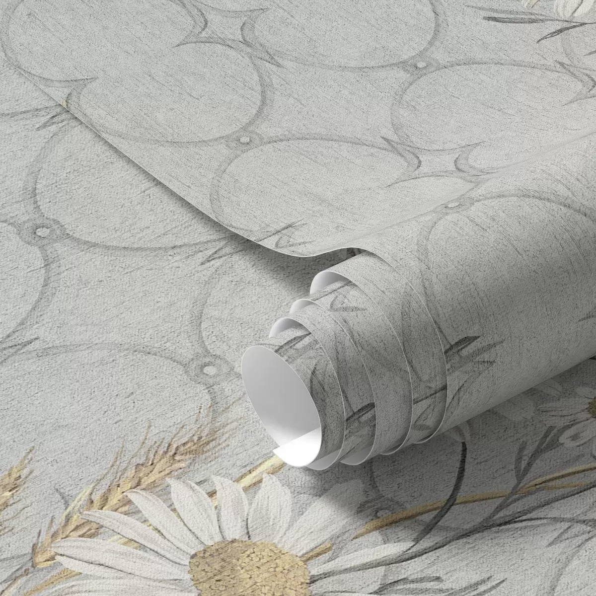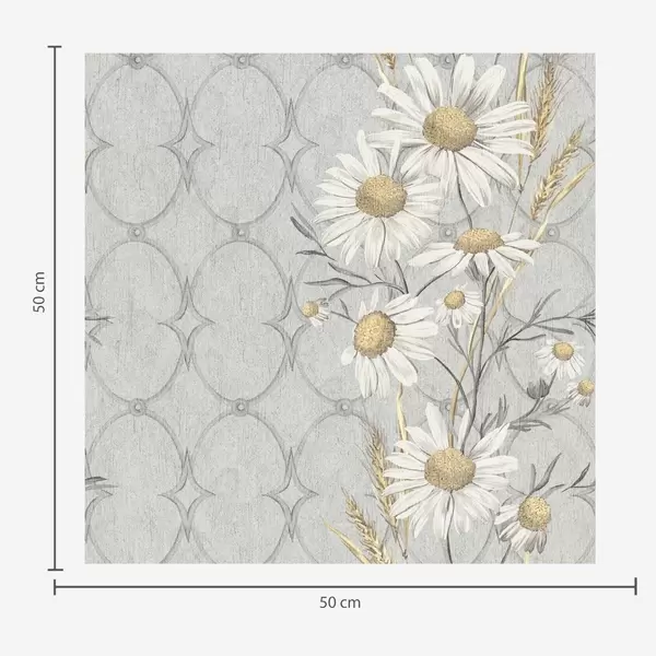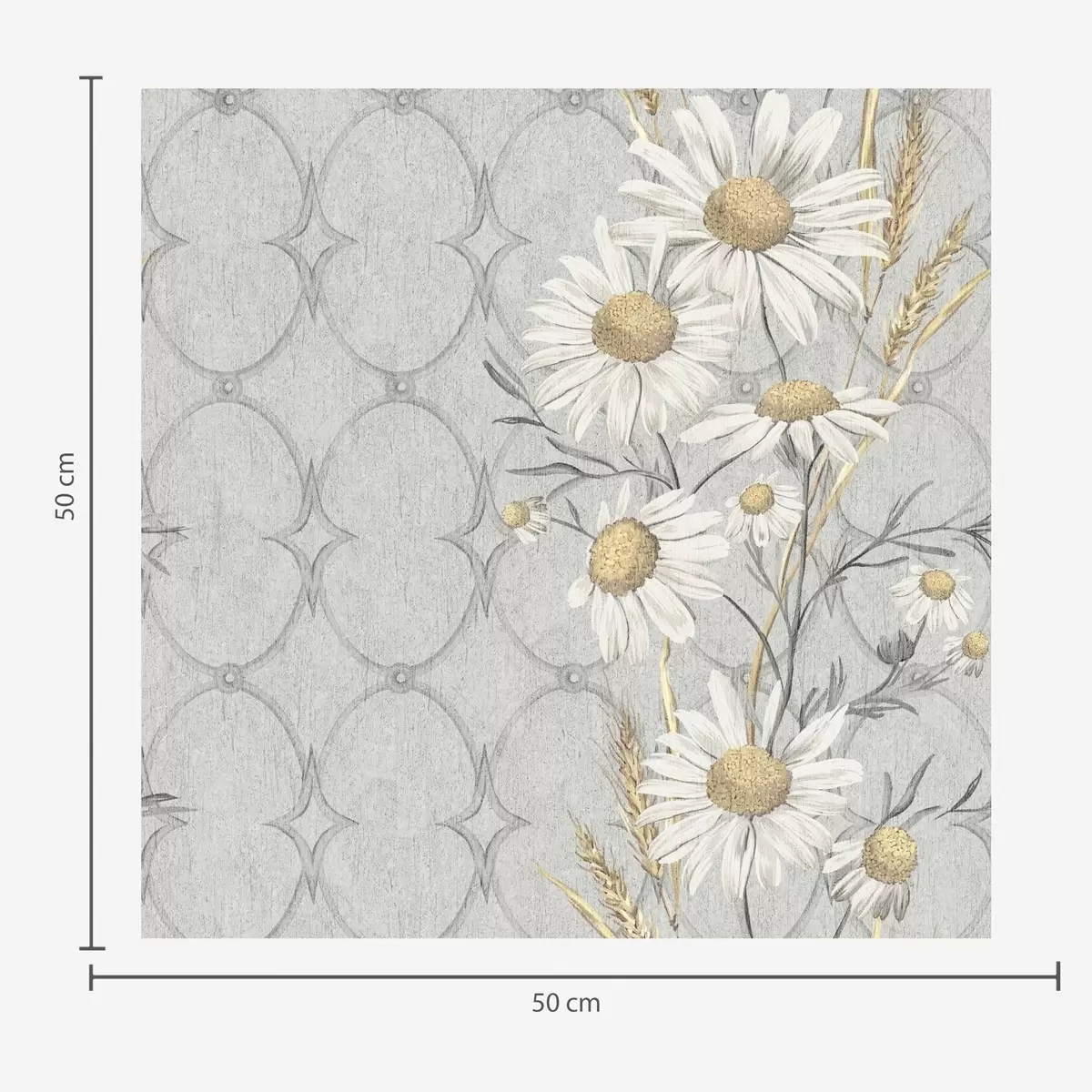 Tapetes Margrietiņas uz pelēka fona ar ģeometrisko rakstu Nr. a00269
