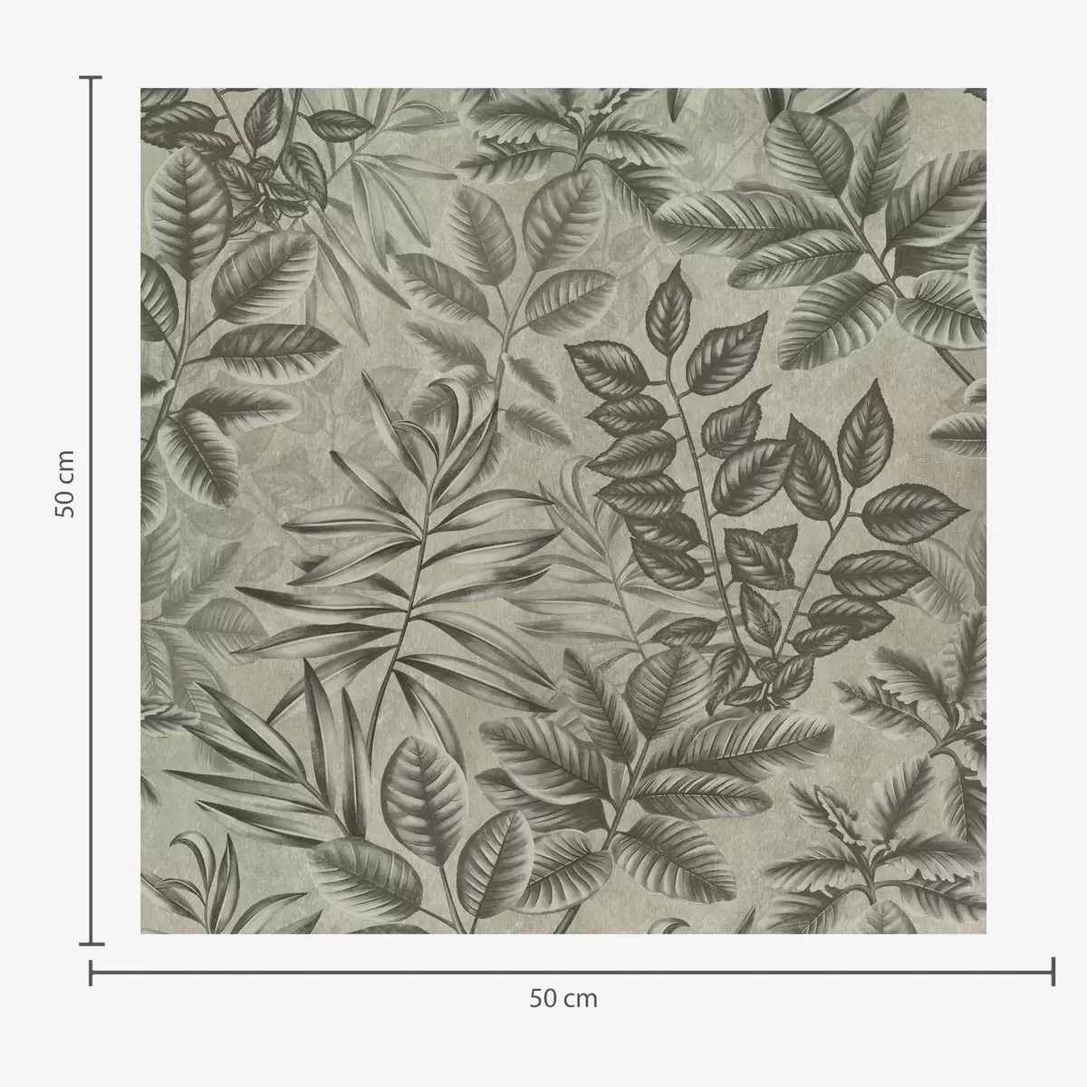 Tapetes Dažādu formu pelēkas tropu lapas uz vintage fona Nr. a00297