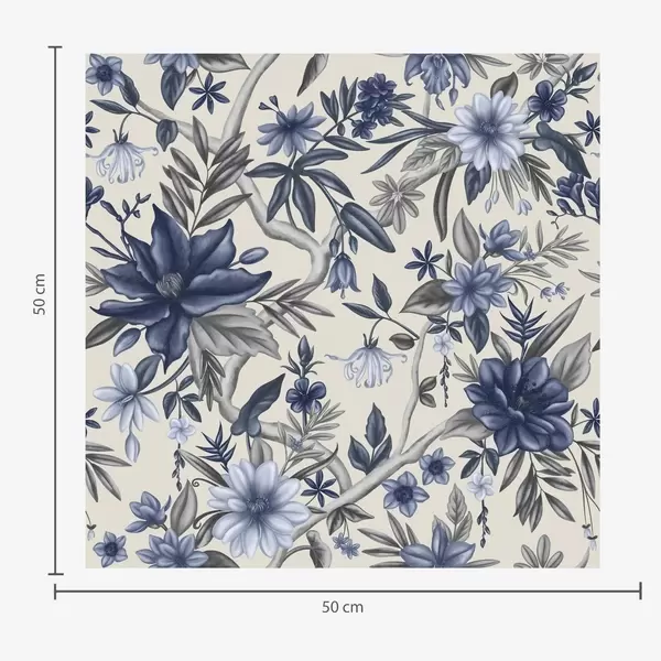 Tapetes Zili un pelēki ziedi uz gaiša fona Nr. a00304