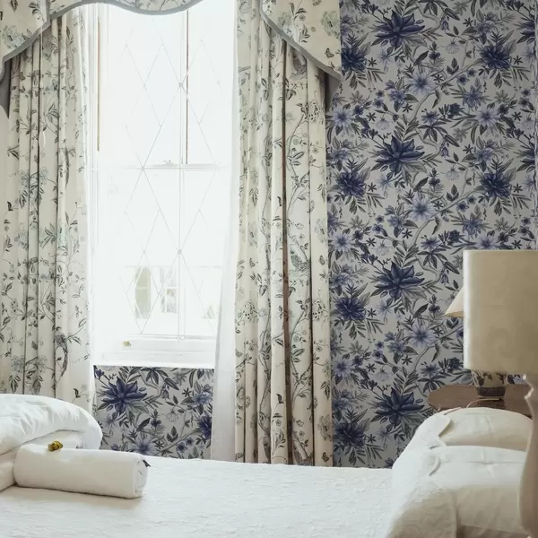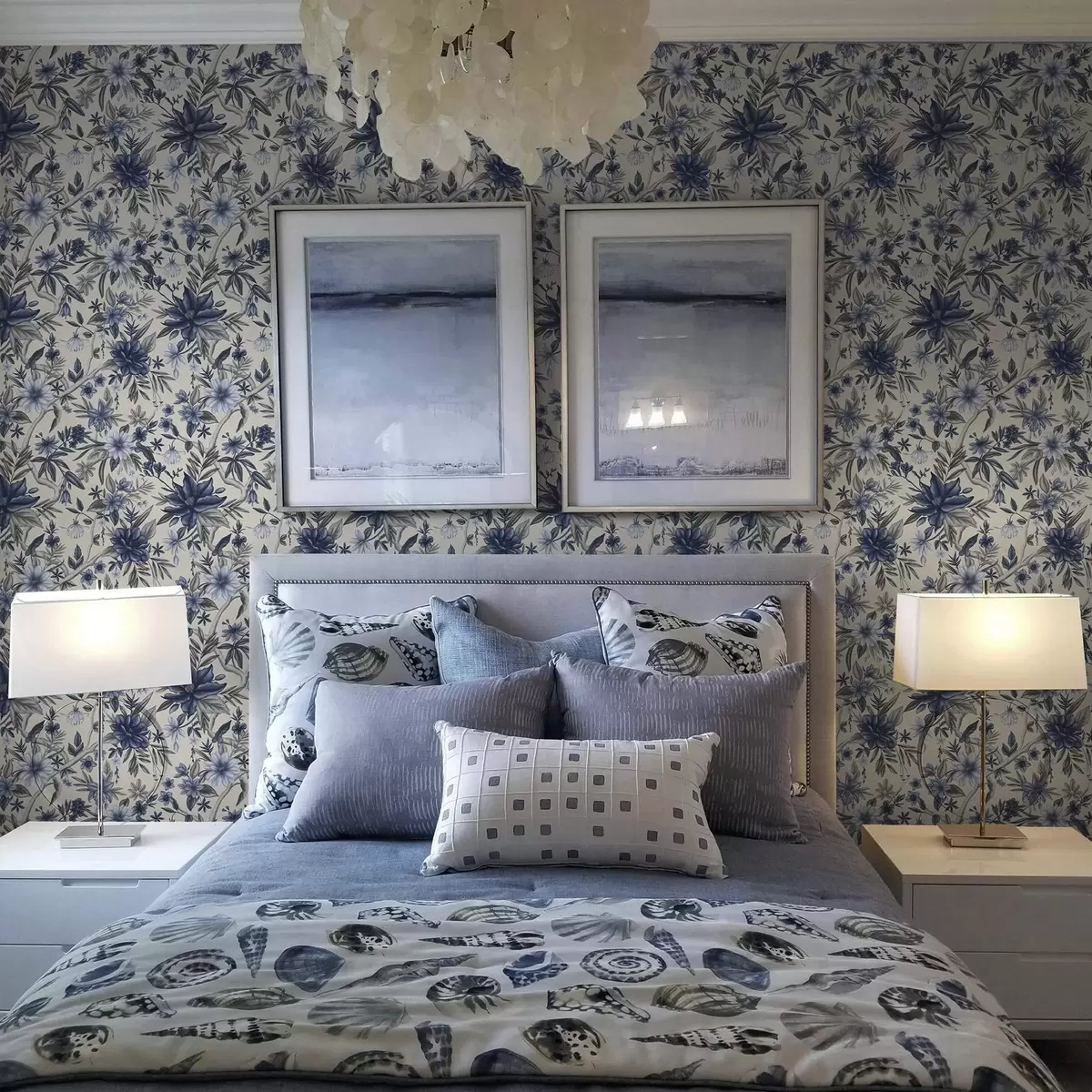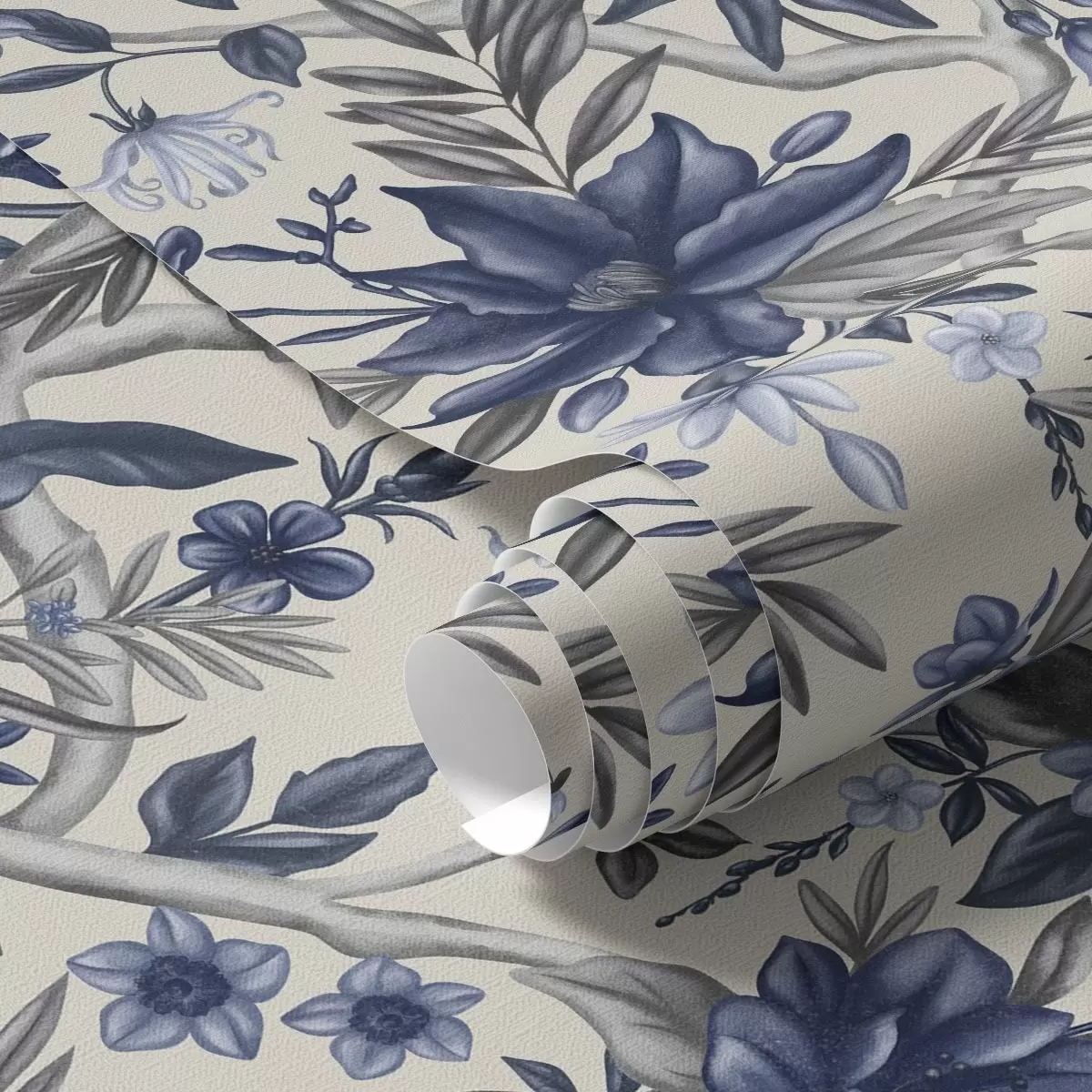 Tapetes Zili un pelēki ziedi uz gaiša fona Nr. a00304