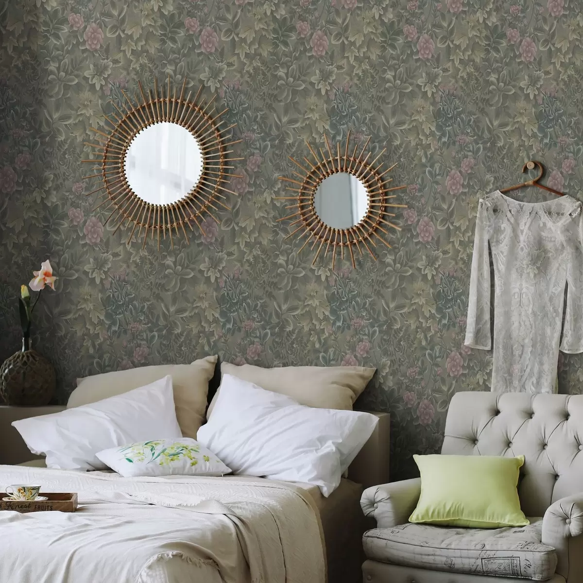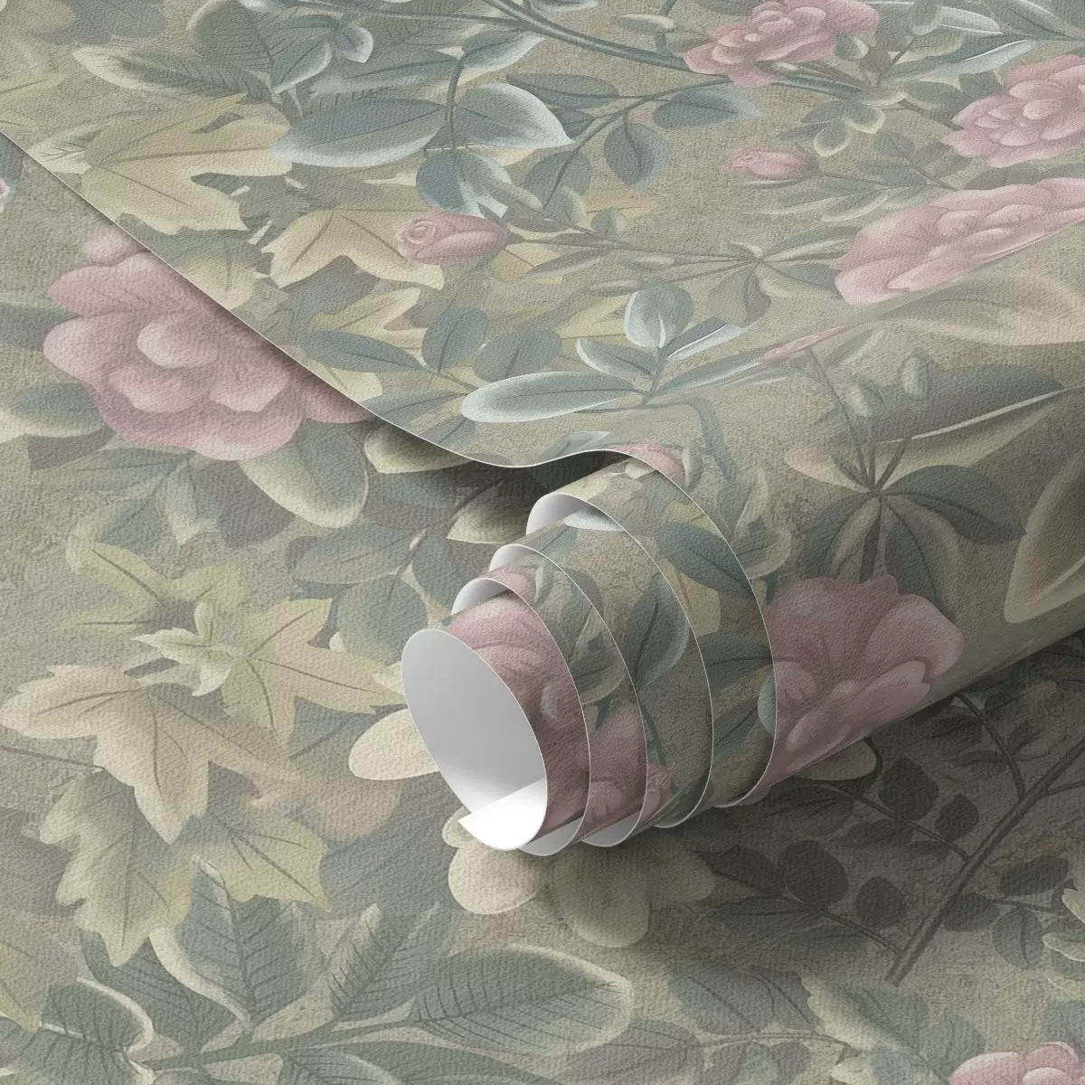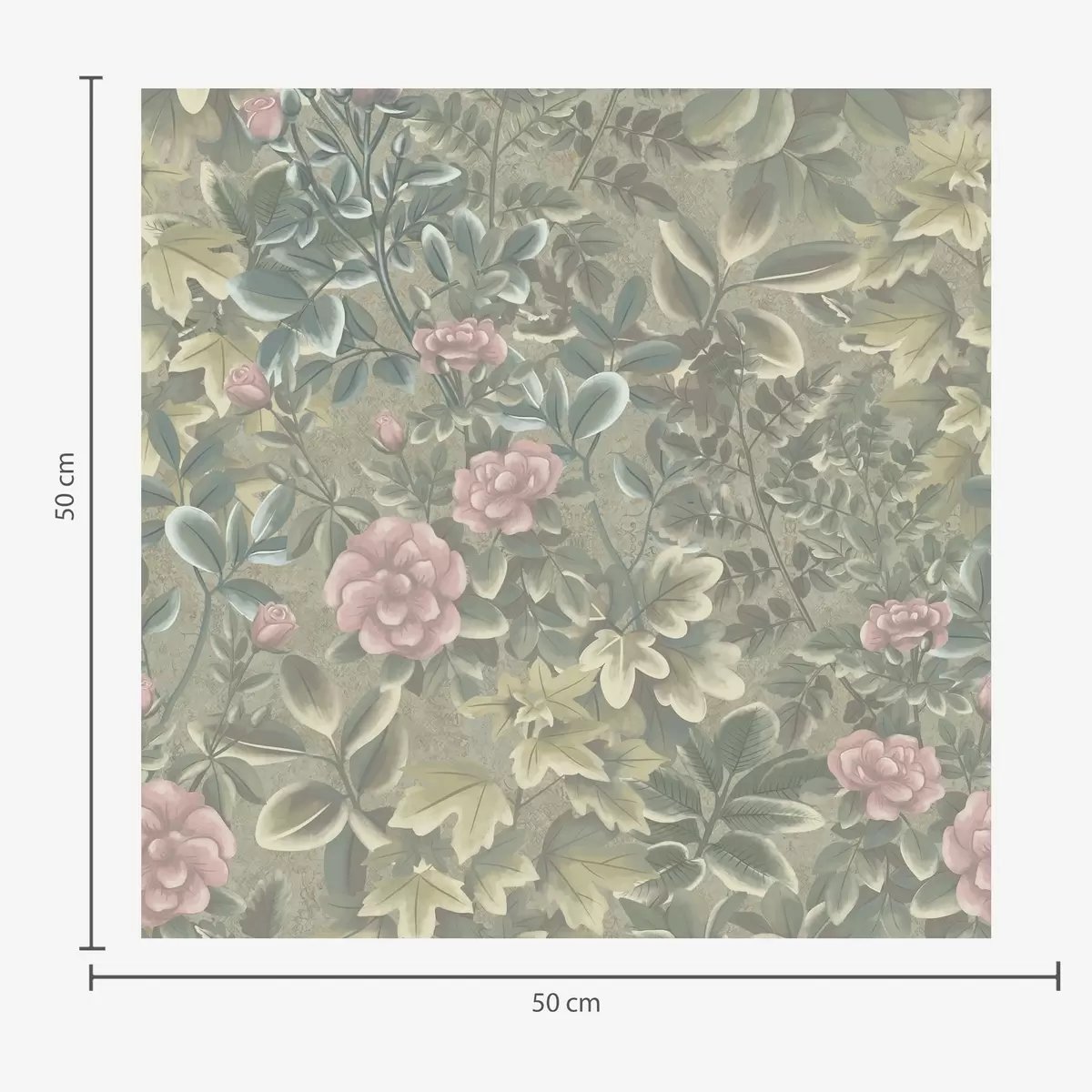 Tapetes Rozā ziedi un lapas uz pasteļzaļa fona Nr. a00306