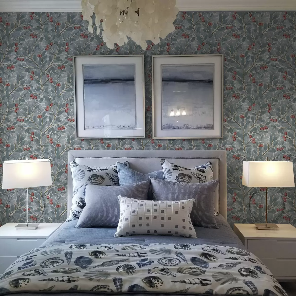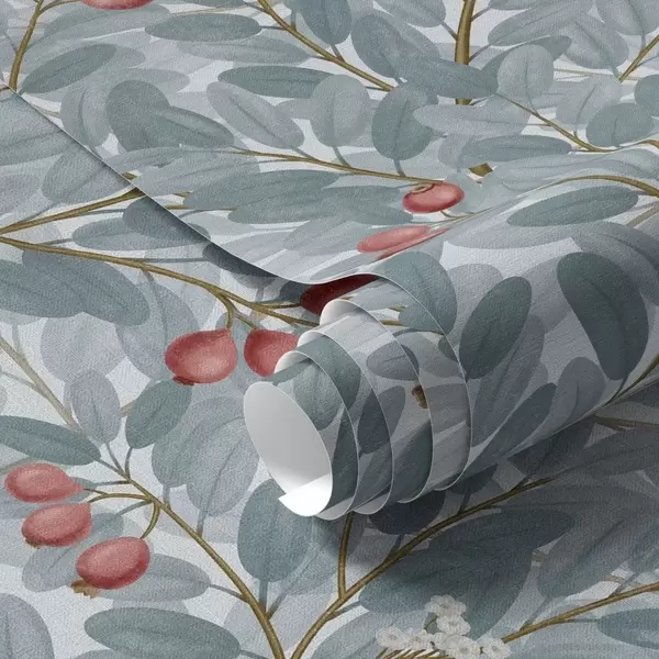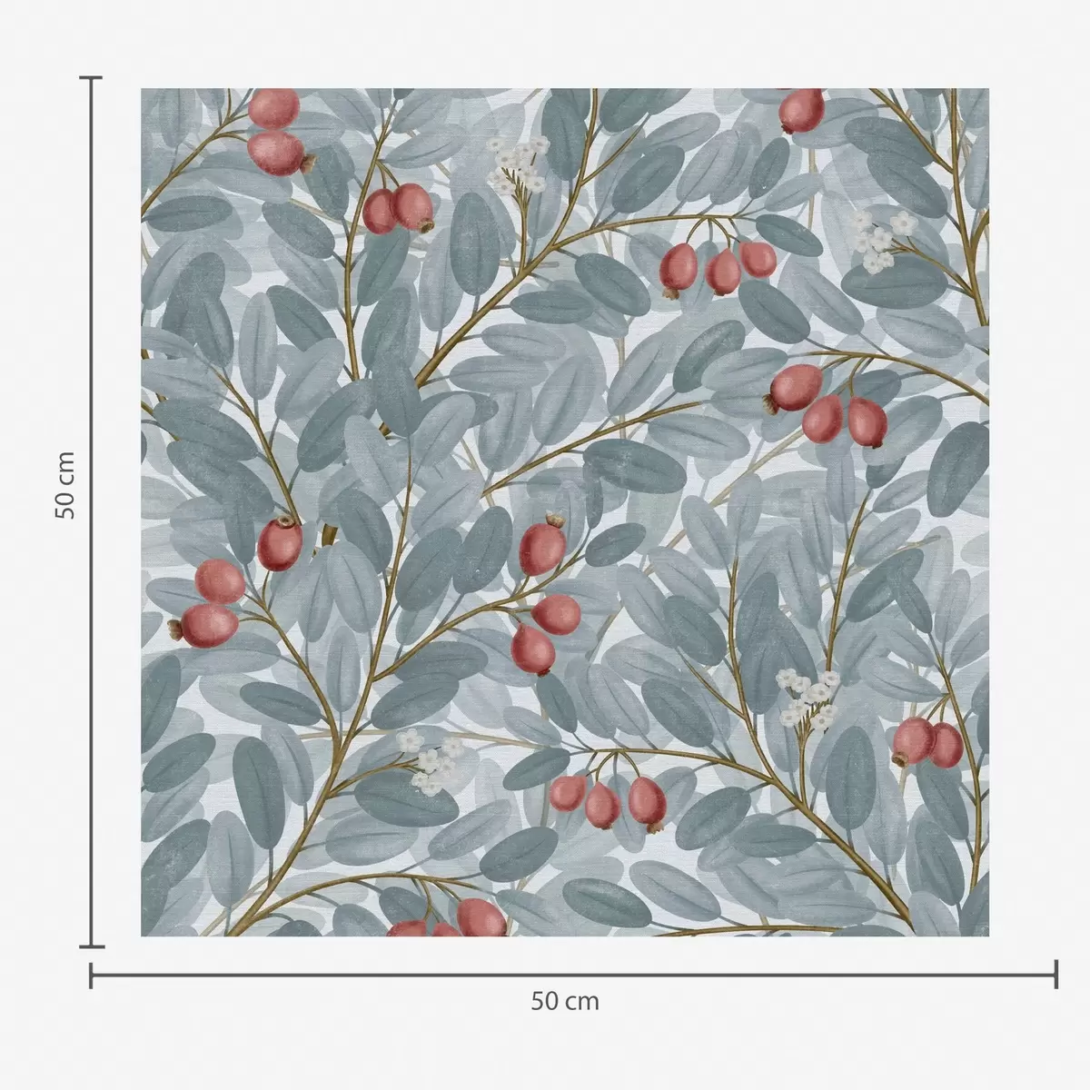 Tapetes Zilas lapas ar sarkanu ogu zariņiem Nr. a00309