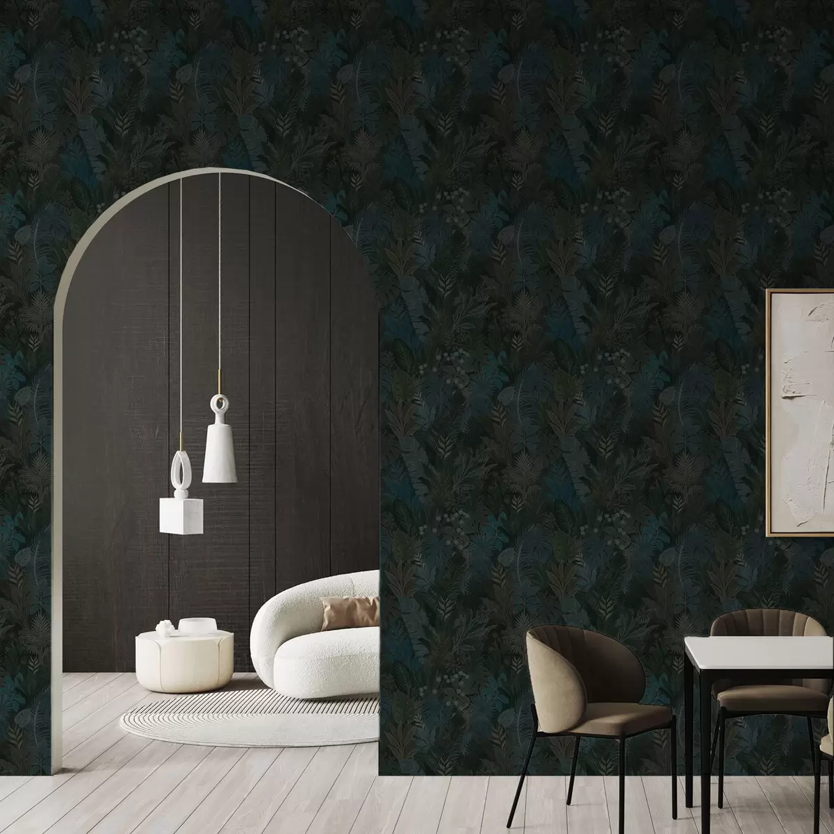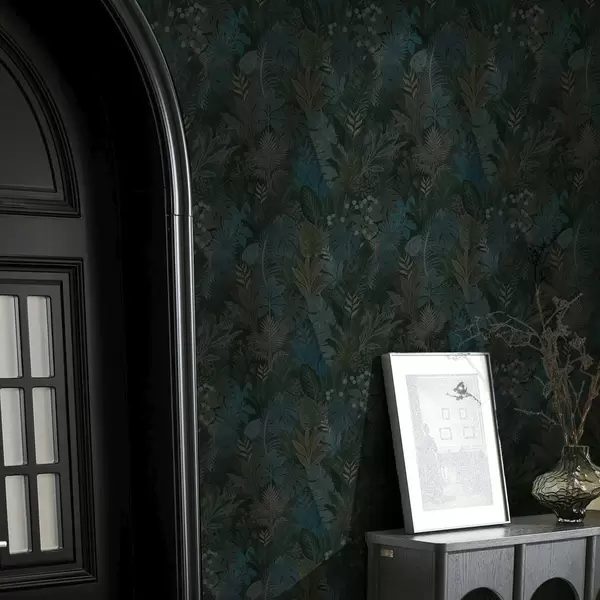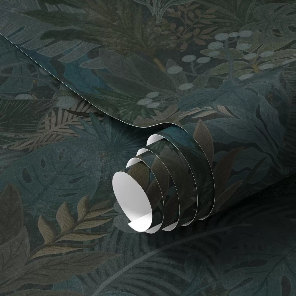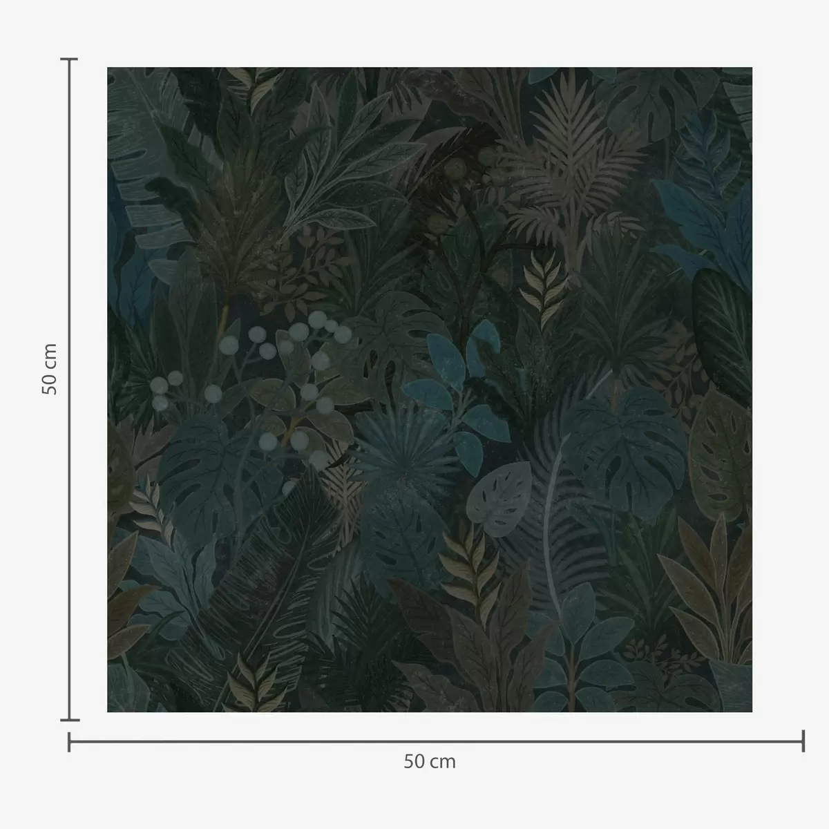 Tapetes Tumši zaļa tropu lapotne ar ziliem akcentiem Nr. a00327