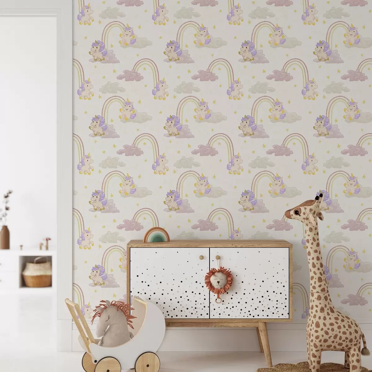 Tapetes Gudrs vienradzis ar varavīksni un zvaigznēm Nr. a00339
