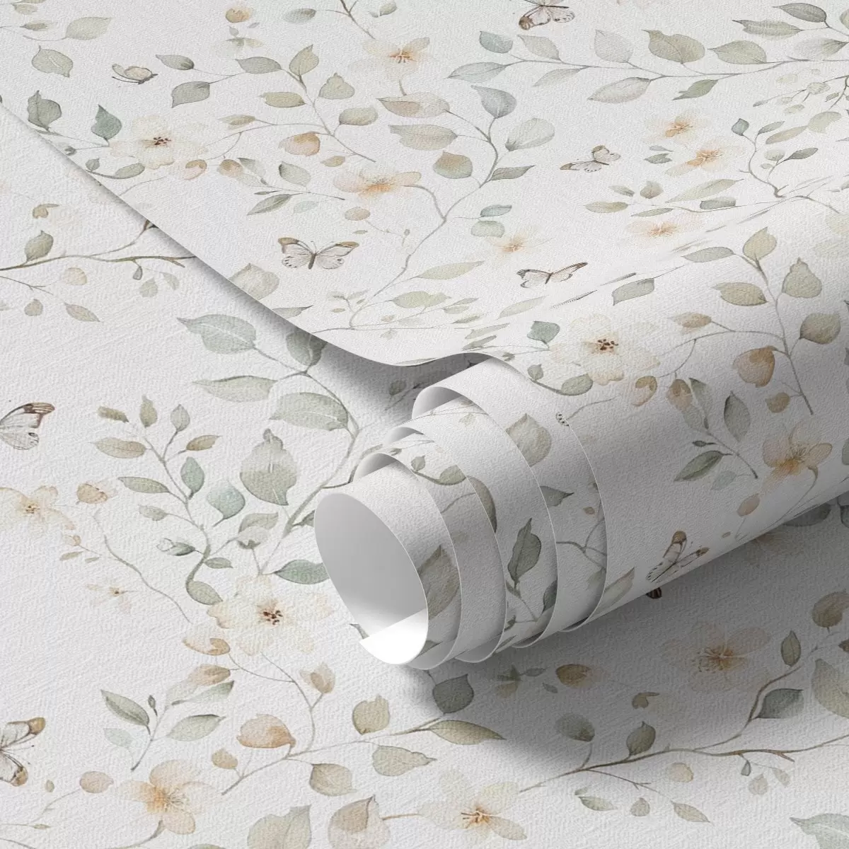 Tapetes Viegli zari ar lapām un ziediem nelielos atkārtojumos Nr. a00343