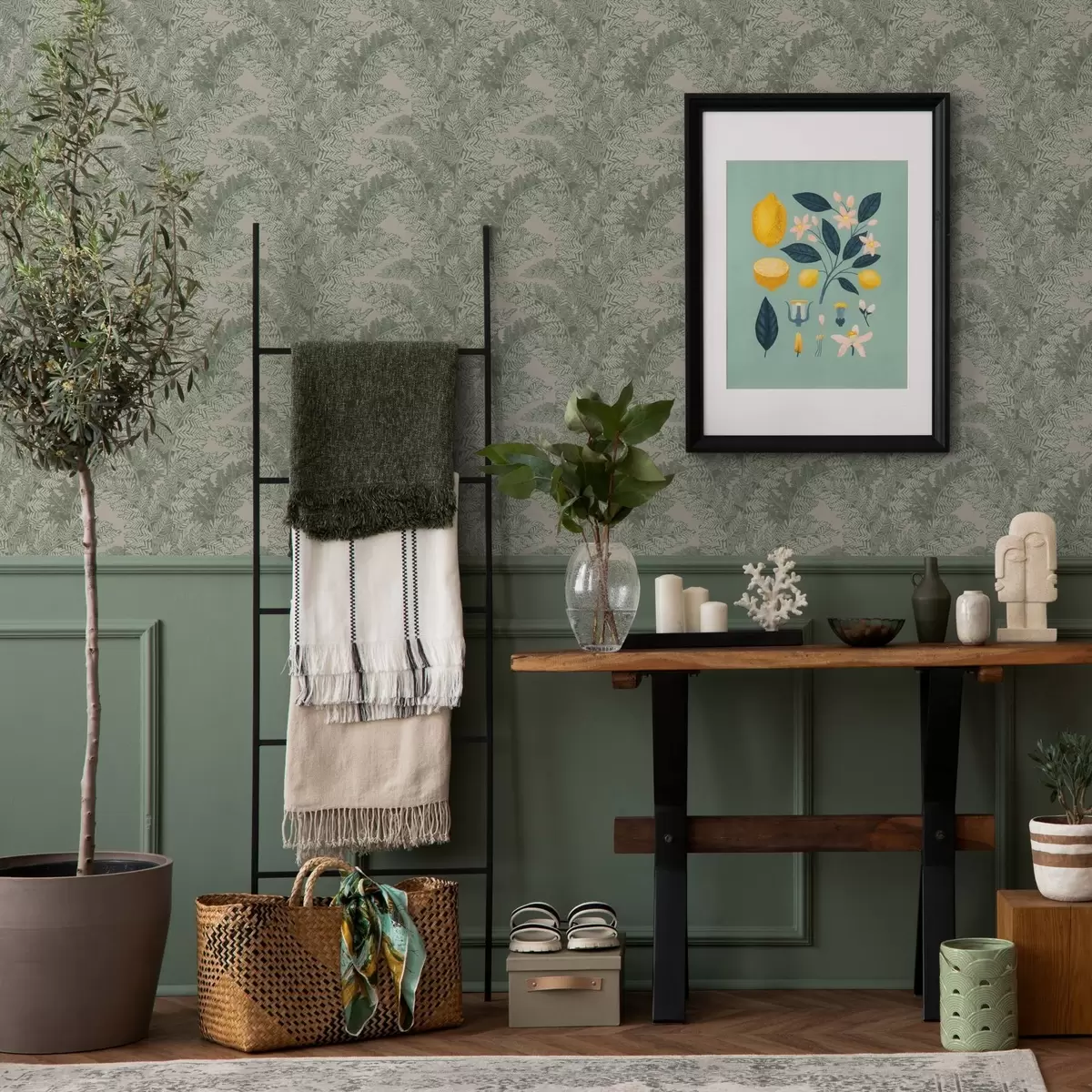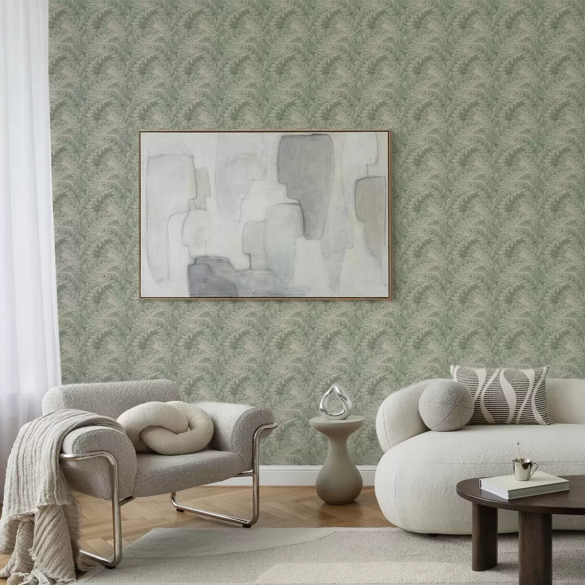 Tapetes Zaļš raksts ar papardes lapām Nr. a00345