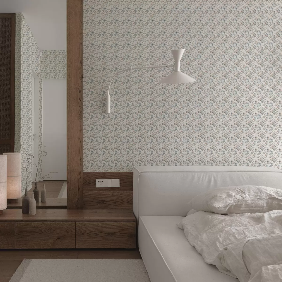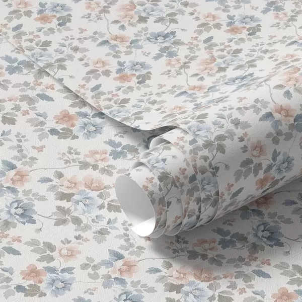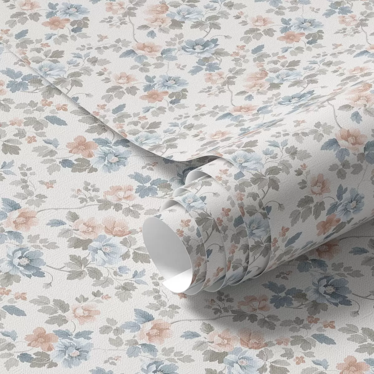 Tapetes Mazs ziedu ornaments zilos un koraļļu toņos Nr. a00347