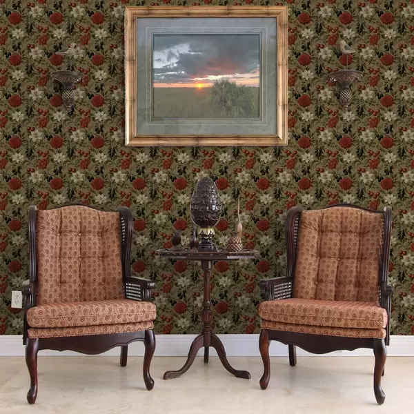 Tapetes Ķirši, ziedi un melnās olīvas Nr. a00384