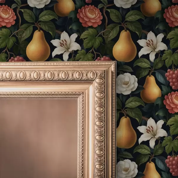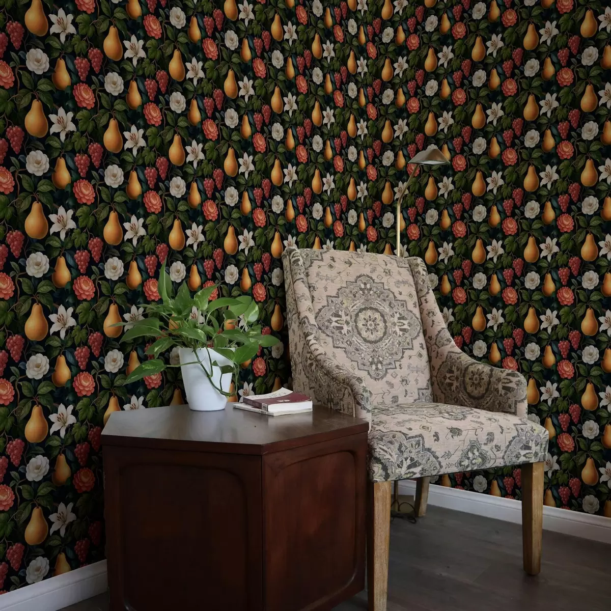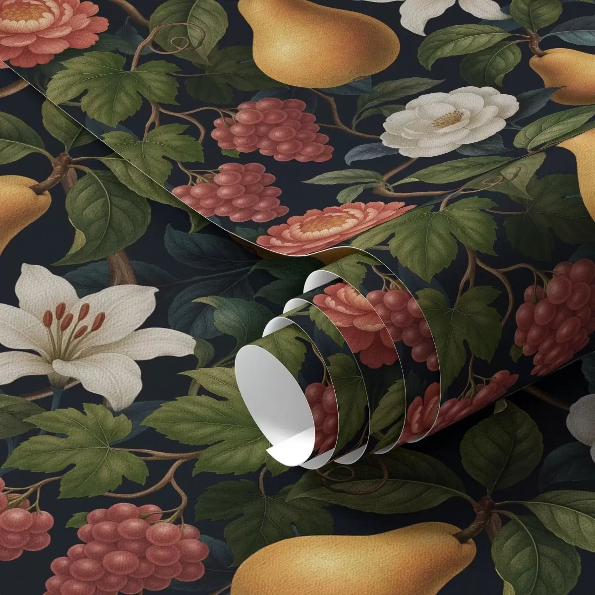 Tapetes Baroka augļi un ziedi uz dramatiska tumša fona Nr. a00387