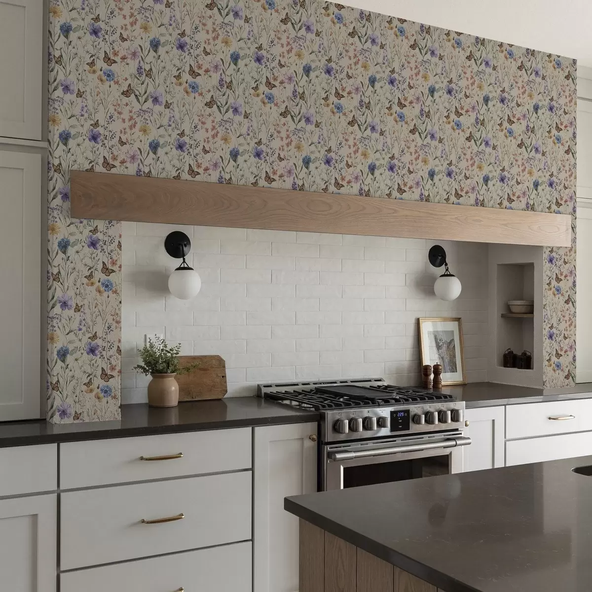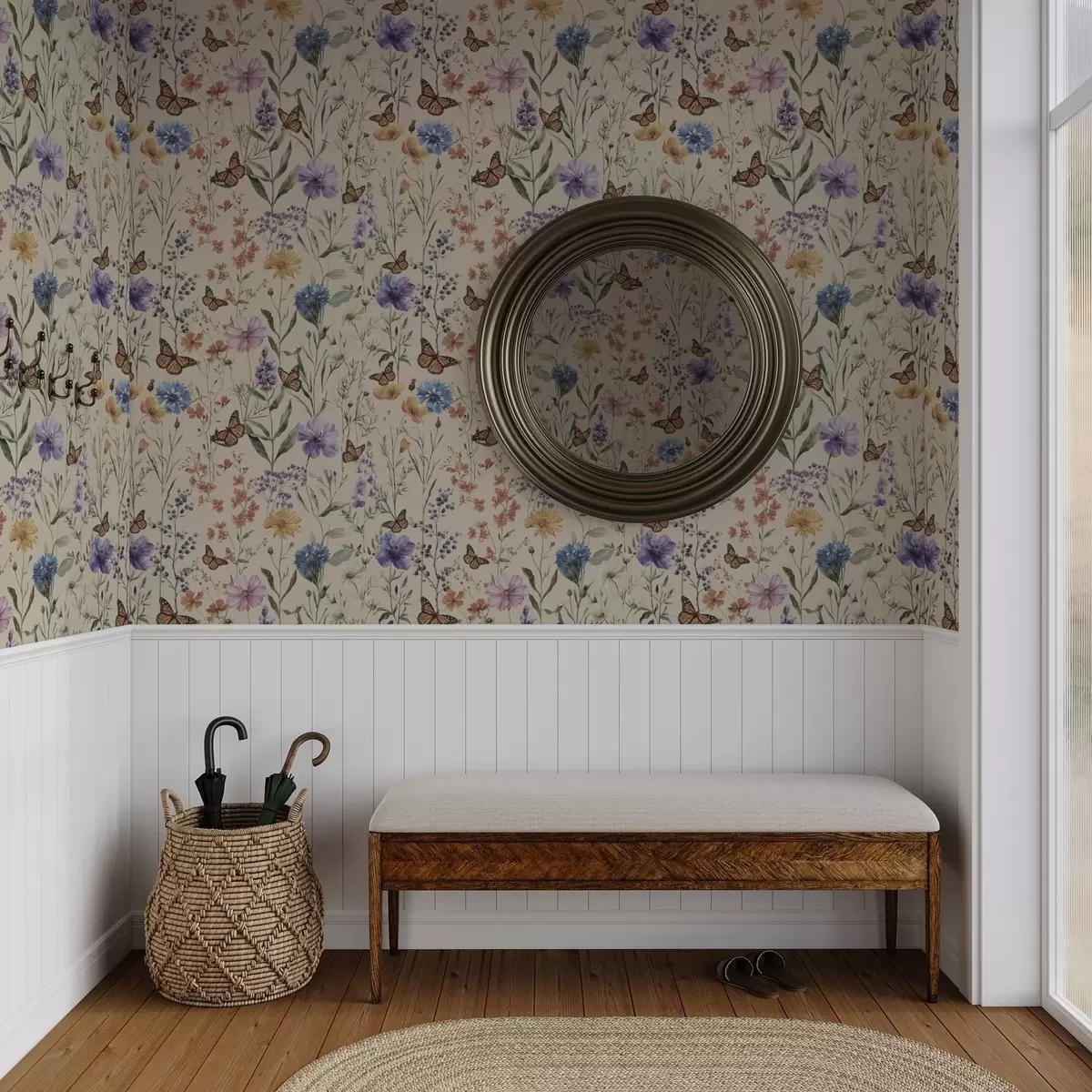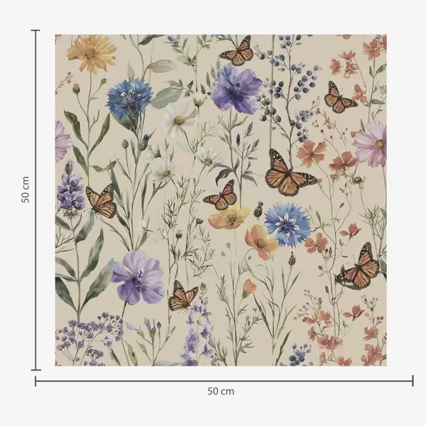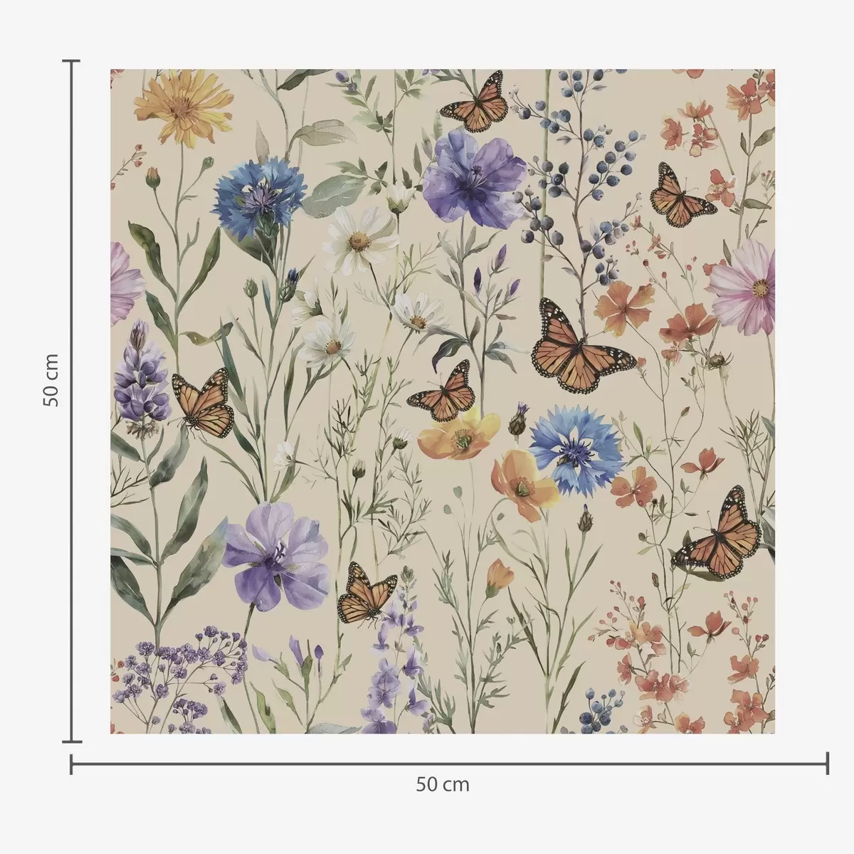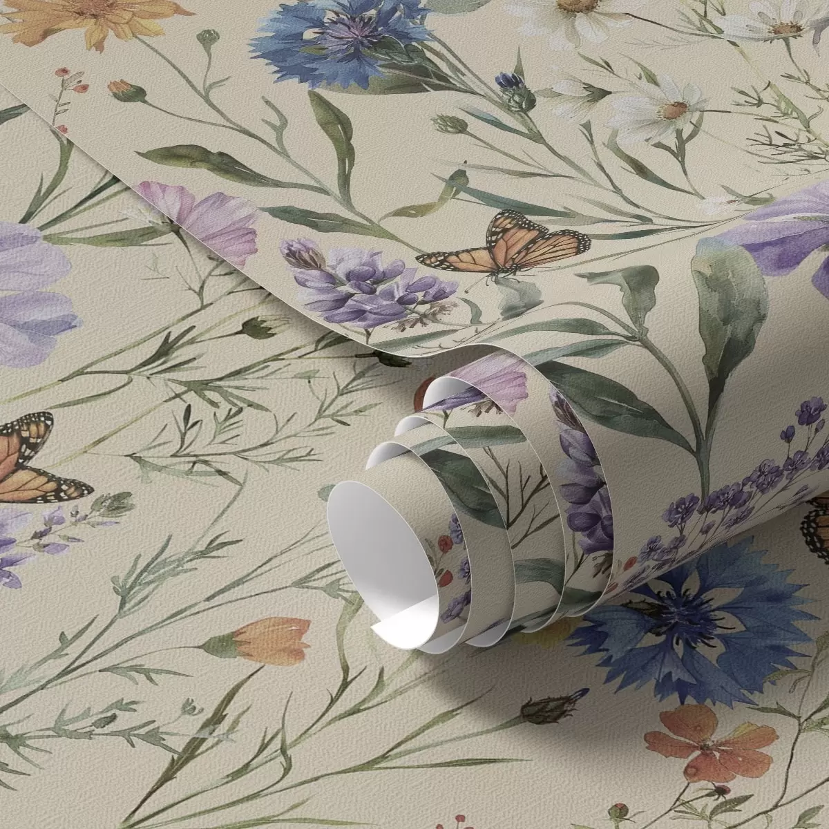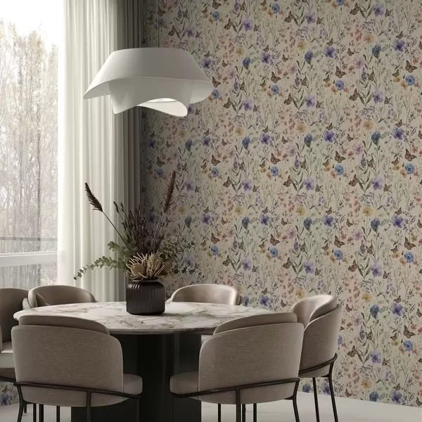 Tapetes Savvaļas puķes un tauriņi maigā akvareļu stilā Nr. a00389