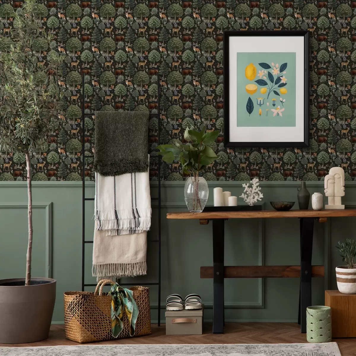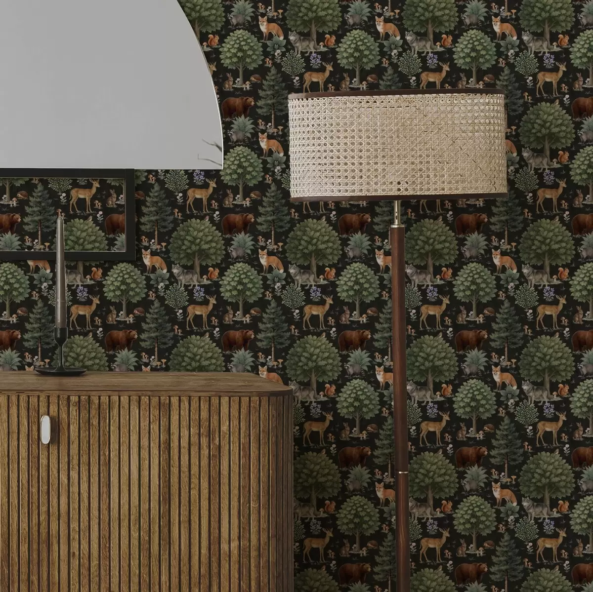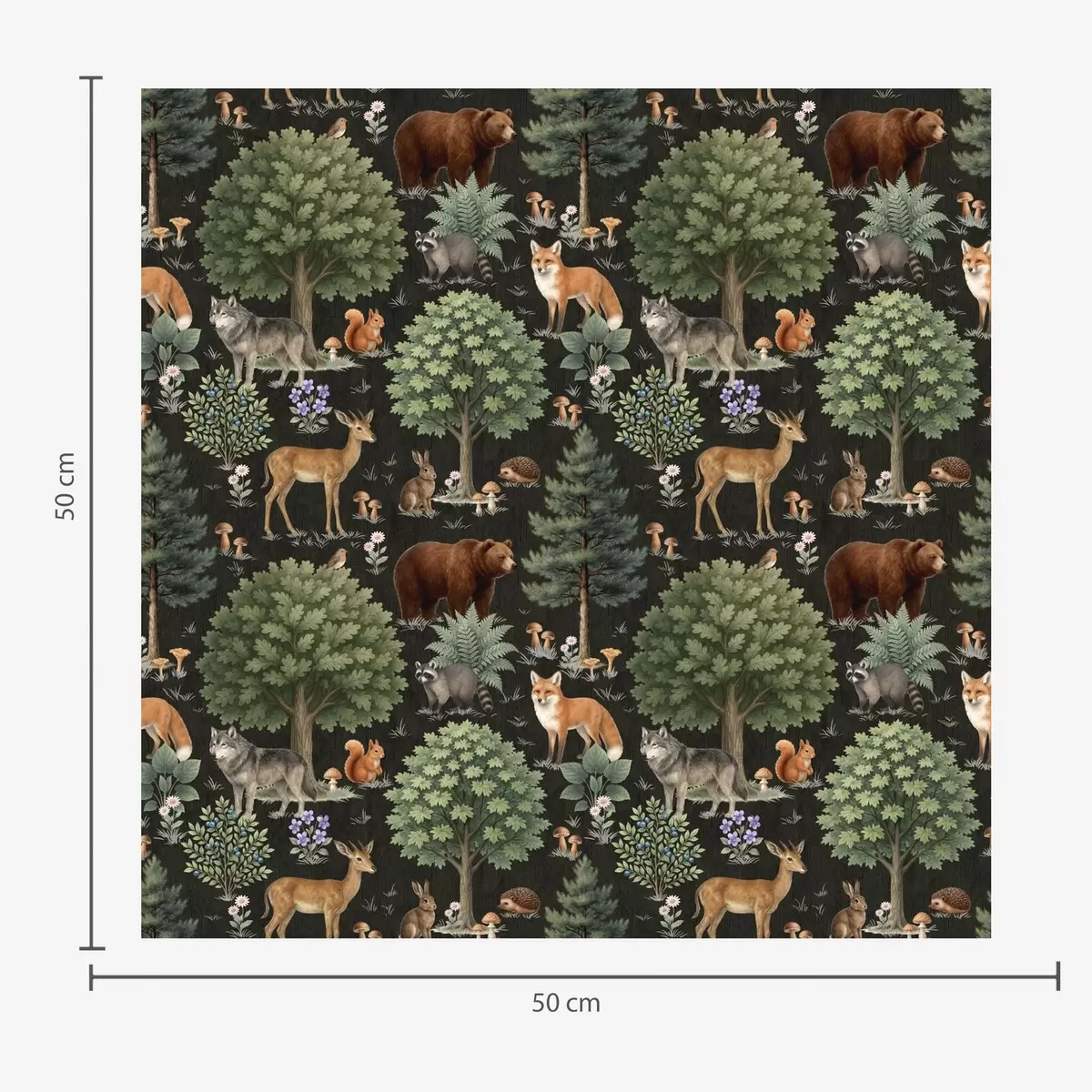 Tapetes Akvareļu meža dzīvnieki ar kokiem un sēnēm a00391