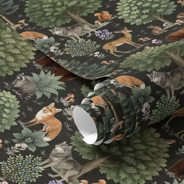 Tapetes Akvareļu meža dzīvnieki ar kokiem un sēnēm Nr. a00391