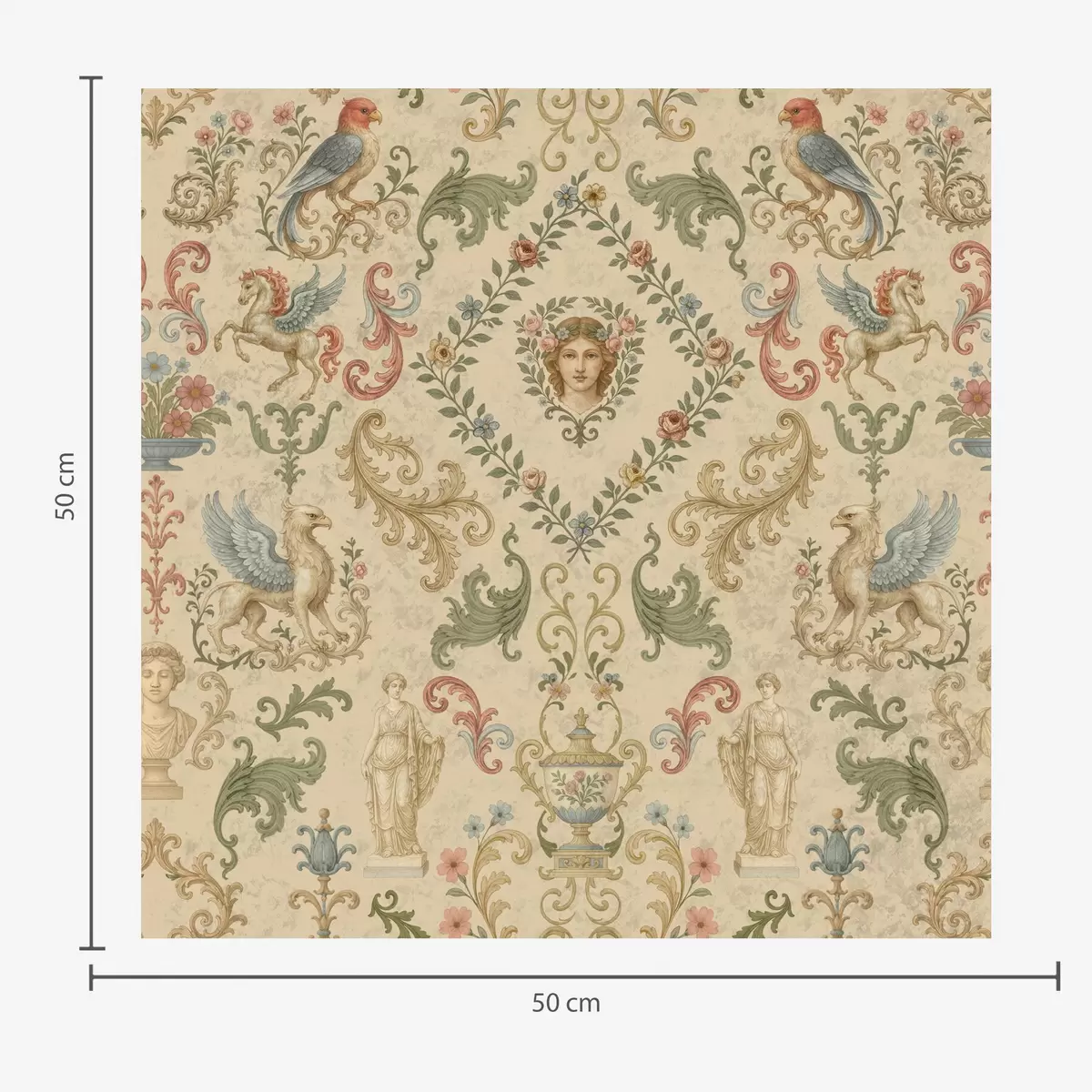 Tapetes Vintage ornaments ar grifoniem, ziediem un figūrām Nr. a00402